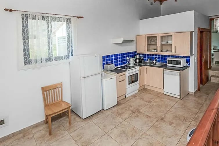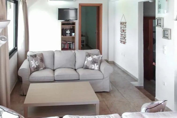 Den luftkonditionerade villan har plats för upp till 4 gäster och är rymlig men mysig. Den erbjuder massor av bekvämligheter utformade för att göra din vistelse oförglömlig. Vardagsrummet är utrustat med mjuka soffor och stora fönster som badar rummet i gyllene ljus och erbjuder utsikt över den glittrande kusten. Köket är modernt och fullt utrustat med en rad bekvämligheter, inklusive tvättmaskin och diskmaskin.