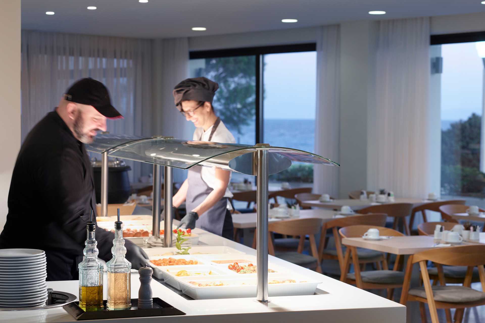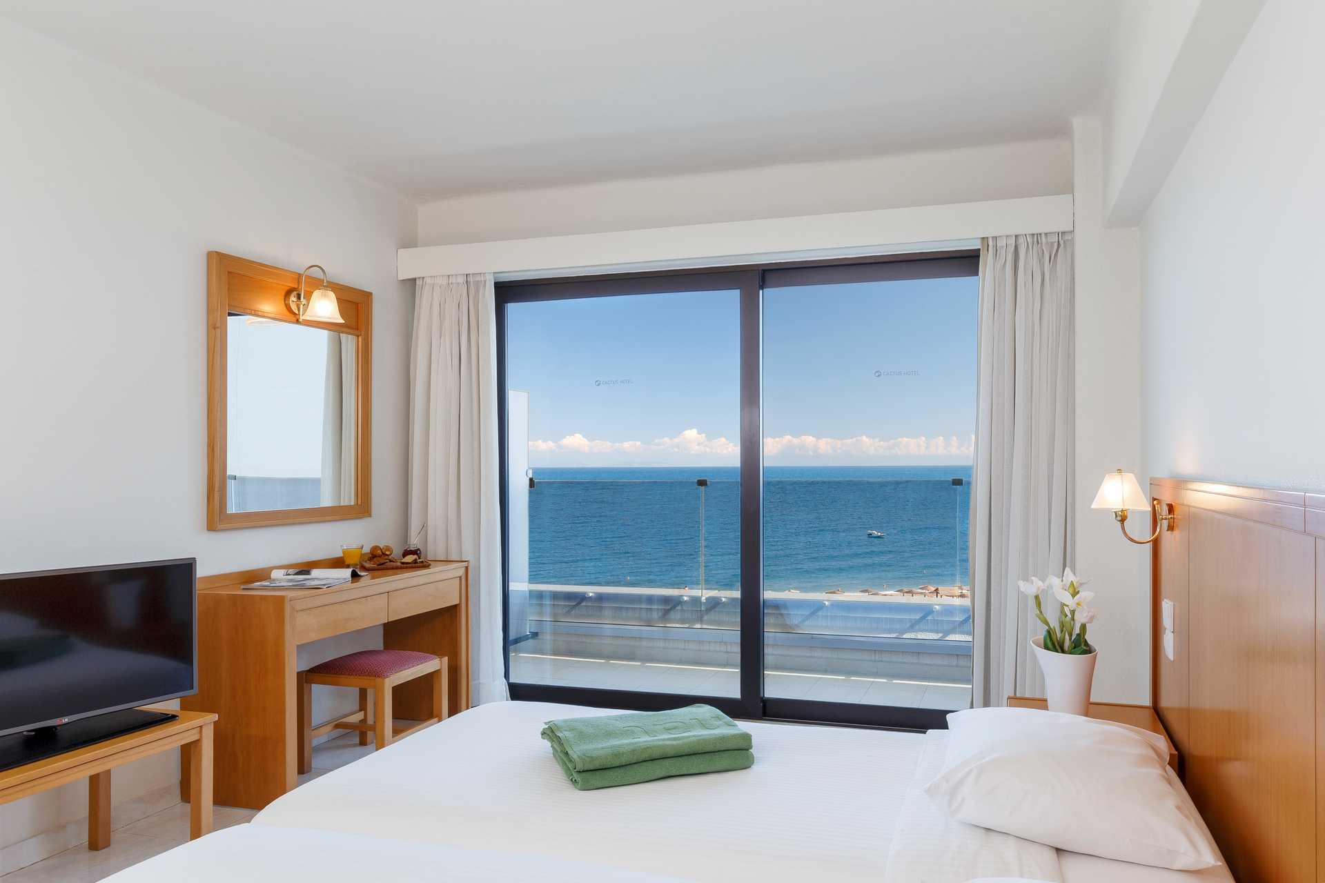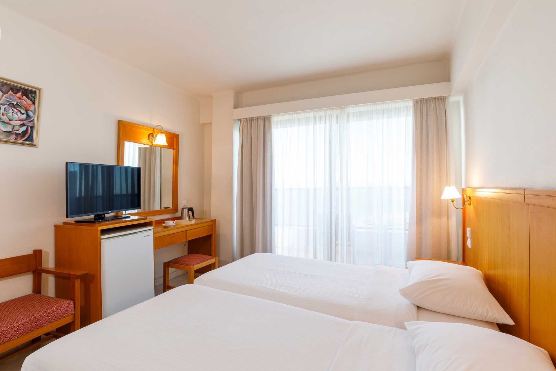 Dubbelrum med balkong, vissa med havsutsikt. En dubbelsäng eller två enkelsängar. Wifi och luftkonditionering (20/5-15/10) ingår. Kylskåp. Vattenkokare. Tv med internationella kanaler. Hårtork. Badrum med badkar eller dusch samt wc. Städning 7 ggr/vecka.