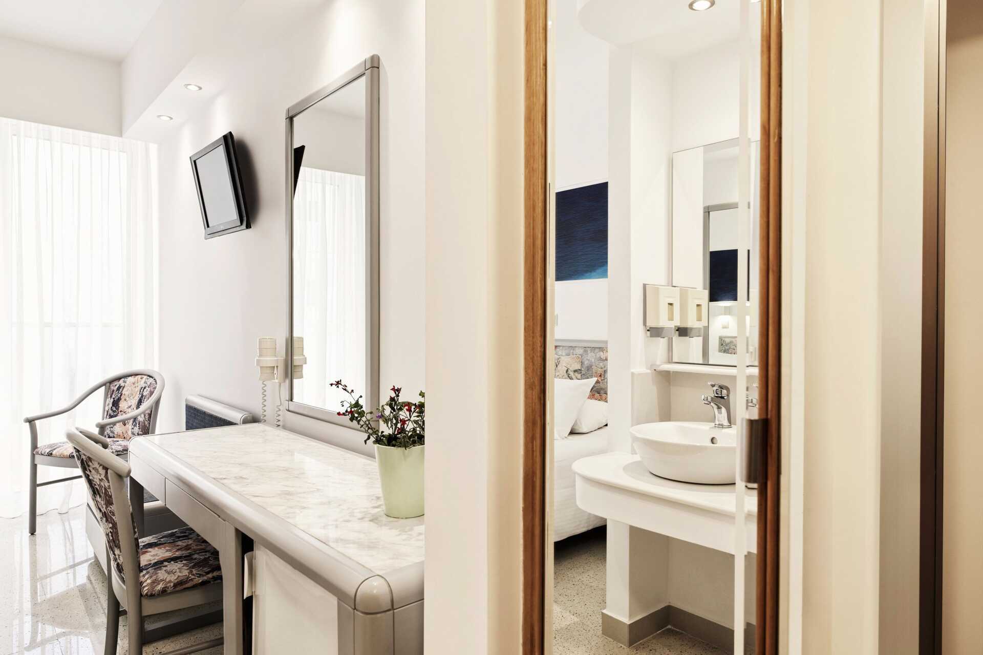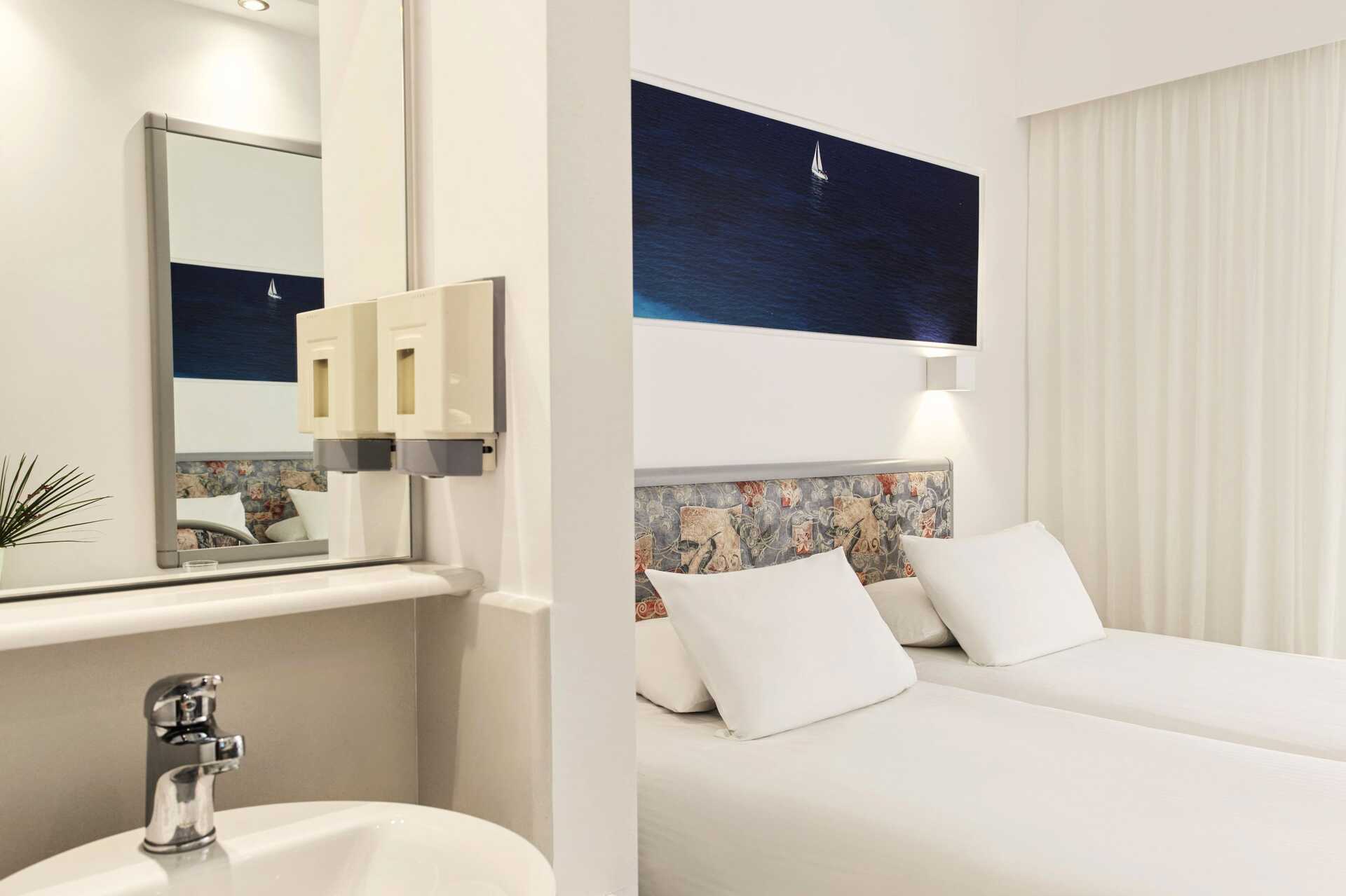 Superiorrum med balkong, vissa med utsikt mot en park. Två enkelsängar. Wifi och deponering ingår. Luftkonditionering ingår i perioden juni till september. Kylskåp. Tv med internationella kanaler. Hårtork. Badrum med dusch och wc. Städning 7 ggr/vecka.
