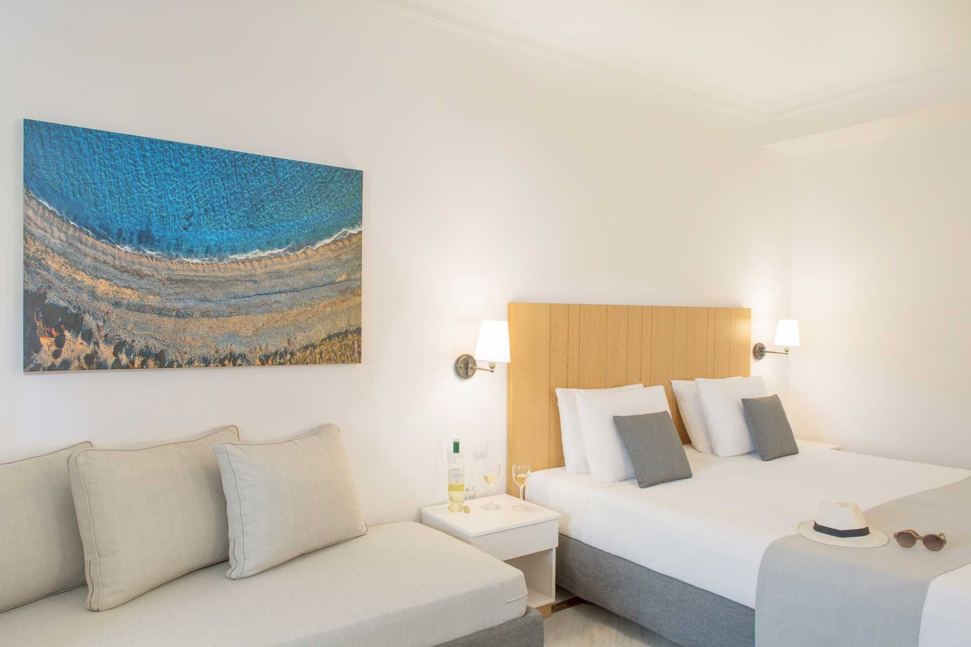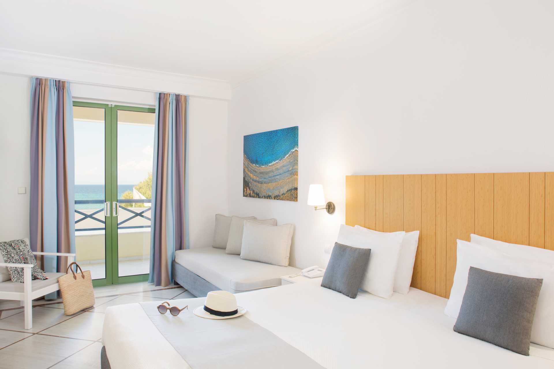 Dubbelrum med balkong och direkt havsutsikt. På hotellet kallas rumstypen Seafront. En dubbelsäng eller två enkelsängar. Möjlighet till extrabäddar i bäddsoffor. Wifi, luftkonditionering och deponering ingår. Kylskåp. Tv med internationella kanaler. Hårtork. Badrockar och tofflor. Badkar med dusch och wc. Städning 6 ggr/vecka. Ljud från trafiken utanför hotellet kan uppfattas som störande i denna rumstyp.