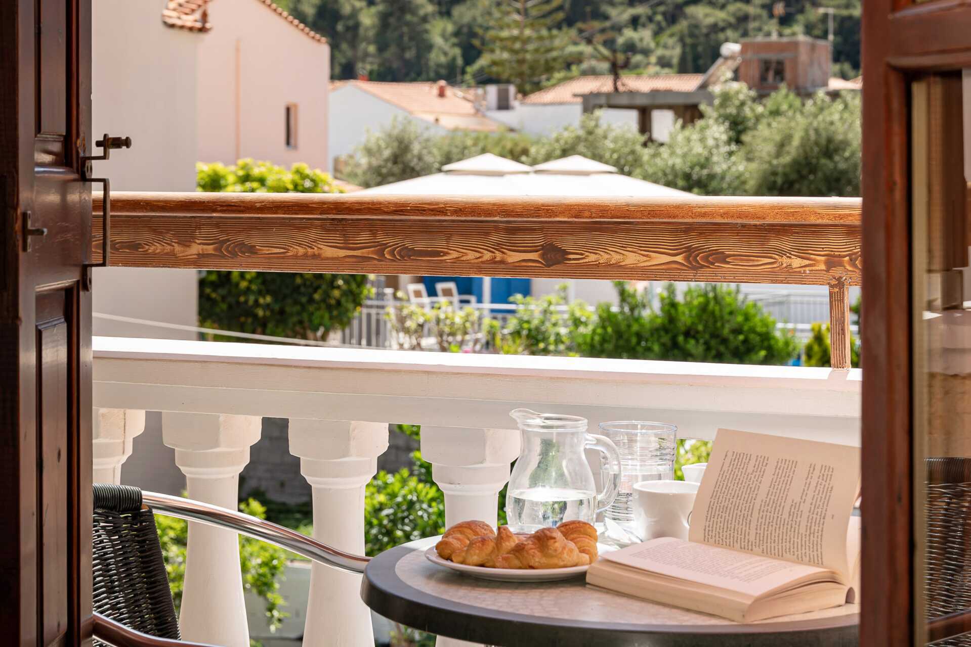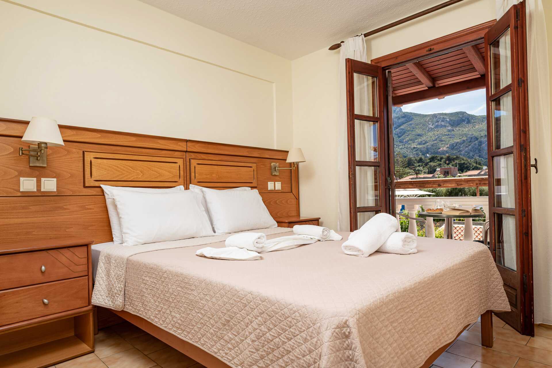 Dubbelrum med balkong eller terrass eller med markterrass. En dubbelsäng eller två enkelsängar. Möjlighet till extrabädd i bäddsoffa. Wifi, luftkonditionering och deponering ingår. Kylskåp. Tv med internationella kanaler. Hårtork. Badrum med badkar eller dusch samt wc. Städning 2 ggr/vecka.