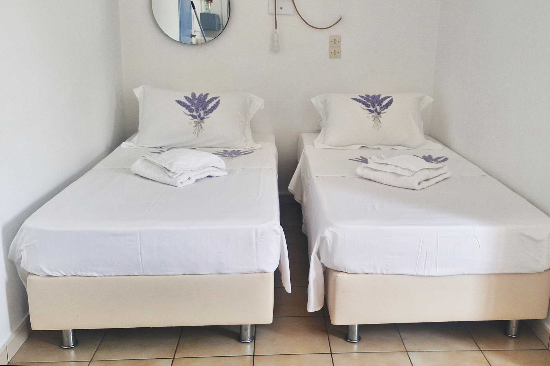 Enrumslägenhet med med stor balkong eller balkong av varierande storlek. Kombinerat sovrum med minikök. En dubbelsäng. Minikök med kokplattor, kylskåp, kaffebryggare, vattenkokare och enkel köksutrustning. Wifi, luftkonditionering och deponering ingår. Hårtork. Badrum med dusch och wc. Städning 6 ggr/vecka. En av enrumslägenheterna ligger mot gatan och trafiken kan uppfattas som störande.