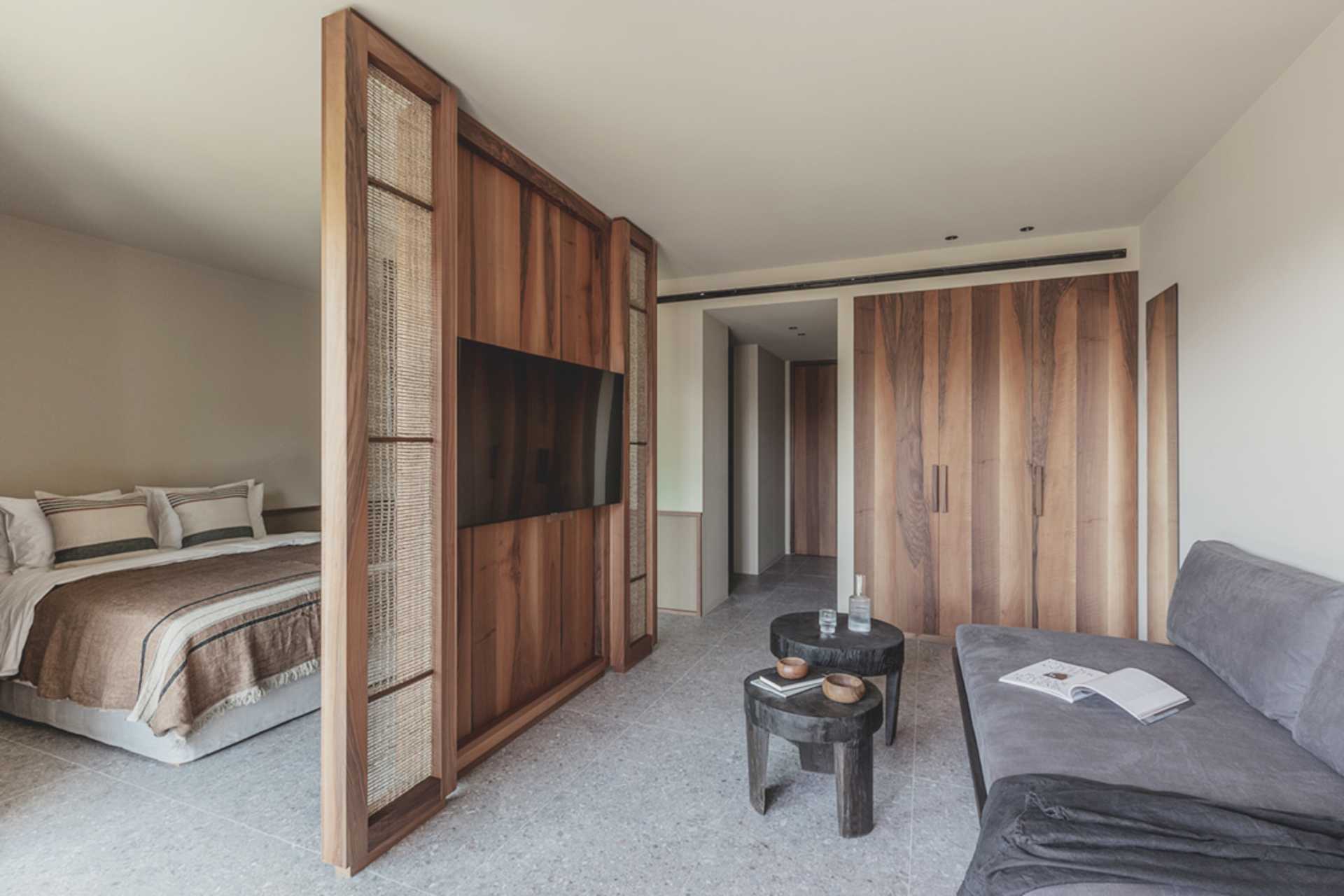 Tvårumssviter med balkong eller terrass. Sviterna ligger i huvudbyggnaden och har en öppen planlösning med en vardagsrumsdel och och en sovrumsdel med en dubbelsäng eller två enkelsängar. Wifi, luftkonditionering och deponering ingår. Kylskåp. Vattenkokare samt kaffe och te. Kaffemaskin - fyra kapslar ingår. Tv med internationella kanaler. Tofflor. Hårtork. Badrum med dusch och wc. Städning 7 ggr/vecka.
