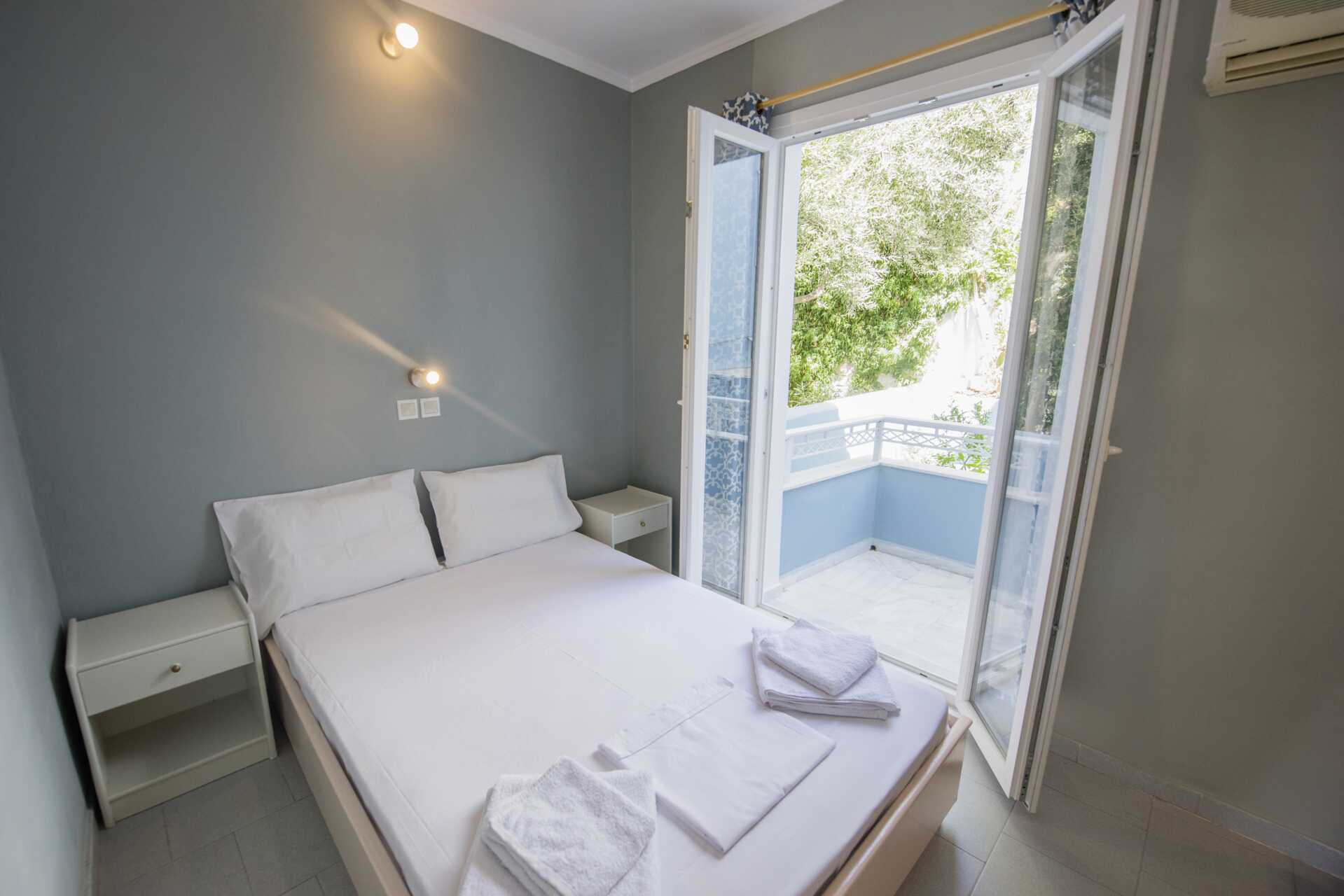 Dubbelrum med balkong eller terrass. En dubbelsäng eller två enkelsängar. Kostnadsfritt wifi och luftkonditionering. Deponering mot avgift. Vattenkokare och kaffebryggare. Badrum med smal duschkabin samt wc. Städning 6 ggr/vecka.