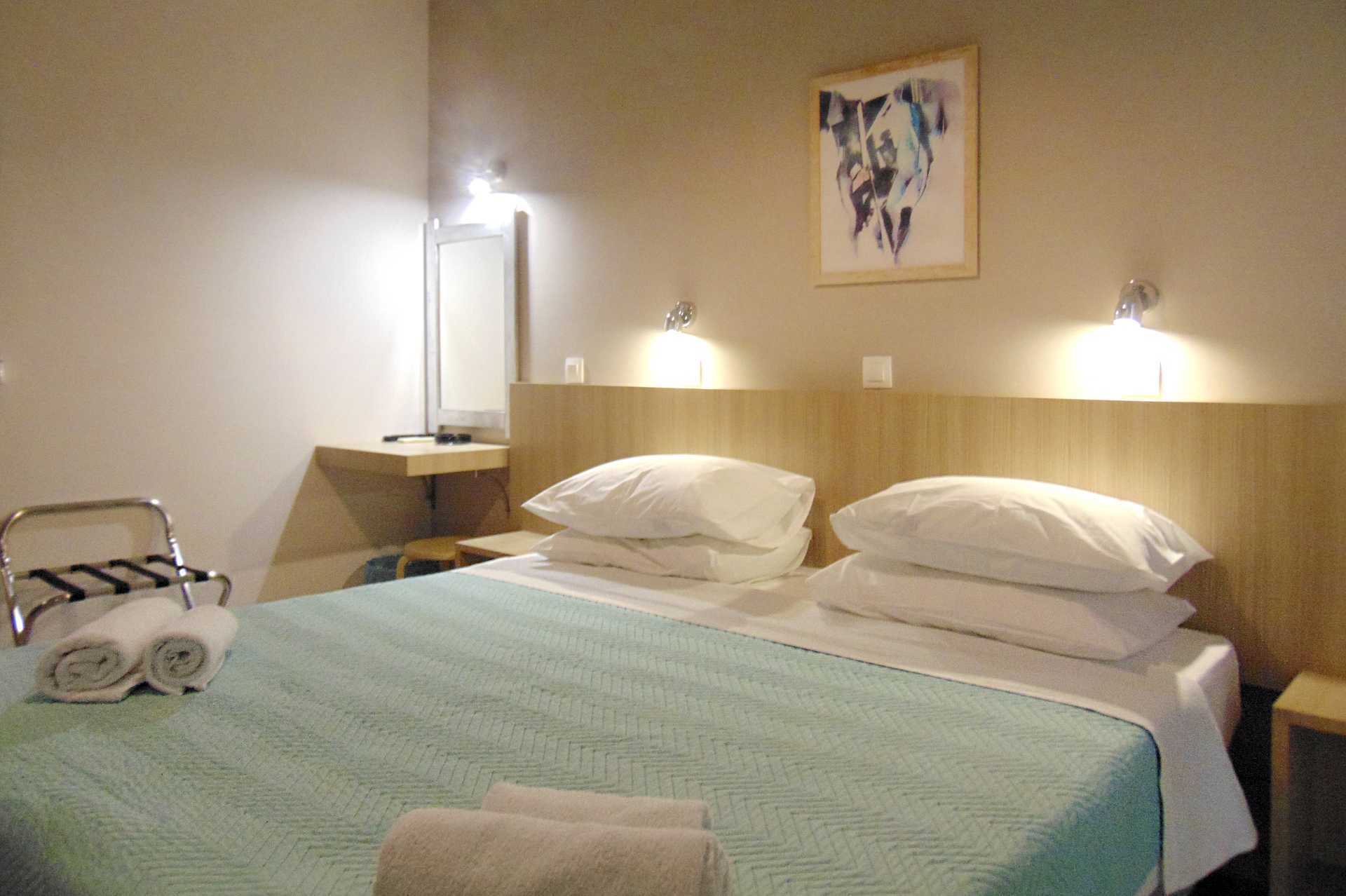 Renoverade dubbelrum med balkong eller terrass, vissa med utsikt mot en närliggande byggnad. En dubbelsäng eller två enkelsängar. Wifi, luftkonditionering och deponering ingår. Kylskåp. Tv med lokala kanaler. Hårtork. Badrum med dusch och wc. Städning 6 ggr/vecka.