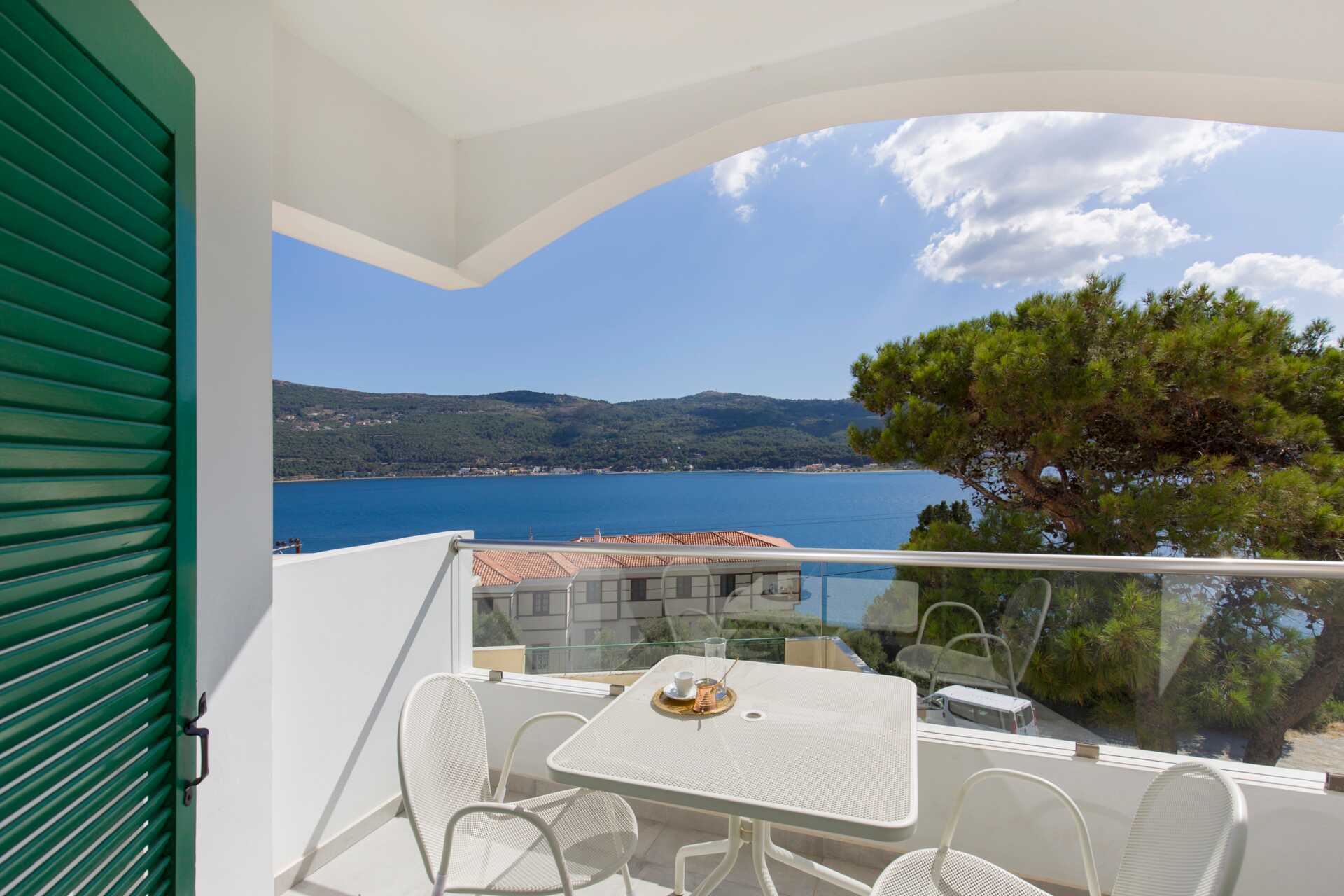 Tvårumslägenhet med balkong eller terrass med havsutsikt. Ett sovrum och ett kombinerat vardagsrum med minikök. Två enkelsängar. Möjlighet till extrabäddar i bäddsoffa. Minikök med kokplattor, kylskåp och enkel köksutrustning. Wifi och luftkonditionering ingår. Deponering mot avgift. Tv med internationella kanaler. Hårtork. Badrum med dusch och wc. Städning 6 ggr/vecka.