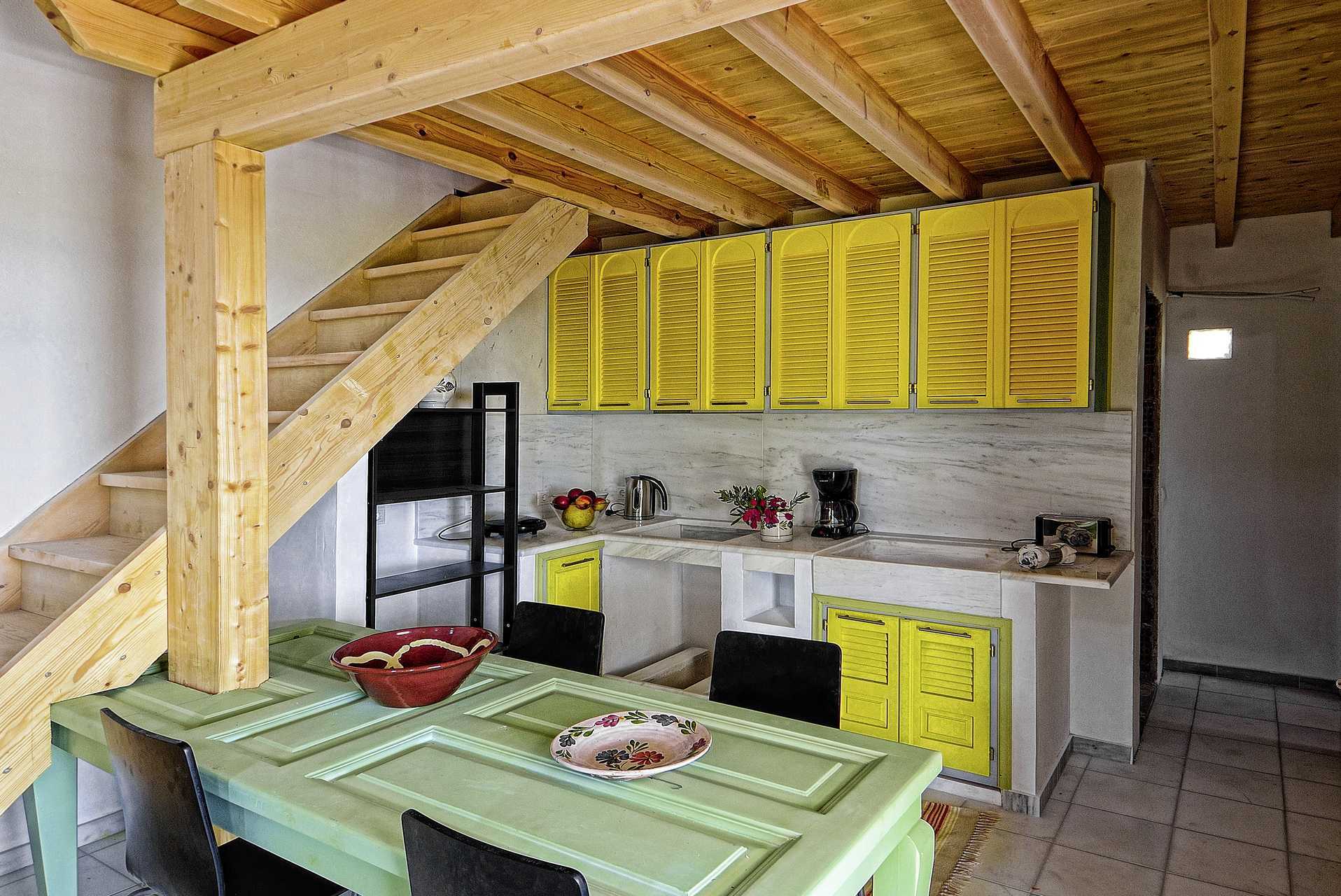 Tvårumslägenhet i etage med markterrass, privat pool och havsutsikt. Ett sovrum med två enkelsängar samt vardagsrum och fullt utrustat kök med kokplattor, kylskåp och enkel köksutrustning på entréplan. I vissa av lägenheterna är sovrummet på loftet, en trappa upp. Möjlighet till extrabäddar i enkelsängar. Wifi, luftkonditionering och deponering ingår. Wifi kan ibland variera i hastighet i de olika villorna. Tv med lokala kanaler. Badrum med badkar eller dusch samt wc. Städning 2 ggr/veckan.