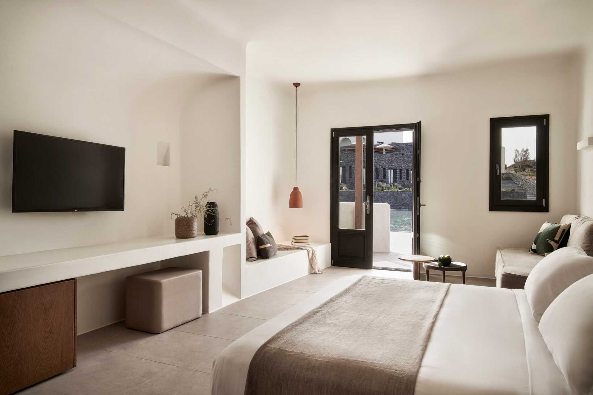 Deluxerum med balkong eller terrass och havsutsikt. En dubbelsäng. Wifi, luftkonditionering och deponering ingår. Kylskåp. Vattenkokare samt kaffe och te. Tv med internationella kanaler. Strykjärn och strykbräda. Badrockar och tofflor. Hårtork. Badrum med dusch och wc. Städning 7 ggr/vecka.
