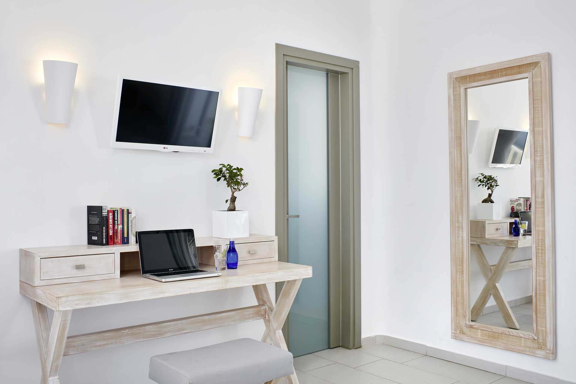 Dubbelrum med balkong eller terrass. Vissa dubbelrum ligger i annexet tvärs över gatan, vid ett poolområde. En dubbelsäng eller två enkelsängar. Möjlighet till extrabädd i bäddsoffa. Kylskåp. Wifi, luftkonditionering och deponering ingår. Tv med lokala kanaler. Hårtork. Badrum med dusch och wc. Städning 7 ggr/vecka. Barn under två årräknas in i maxantalet personer i rummet.