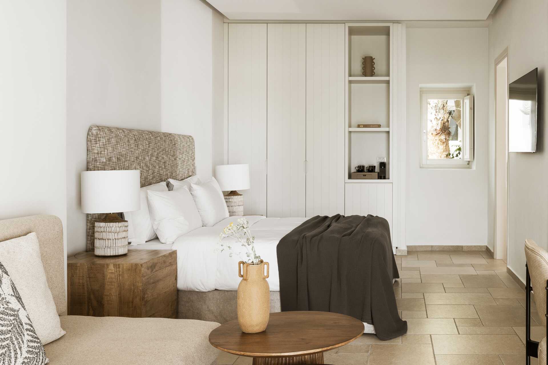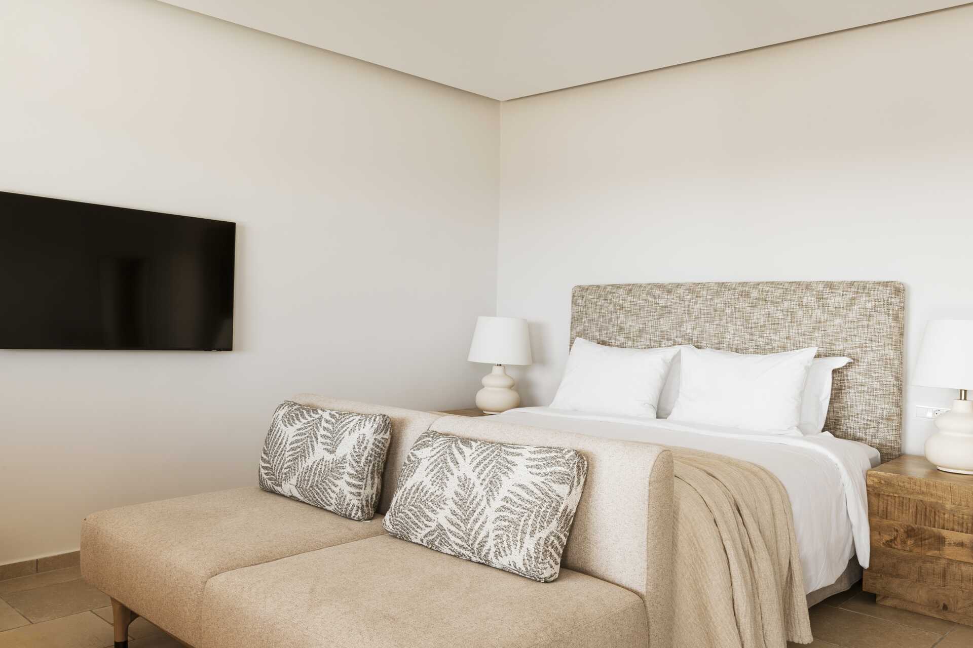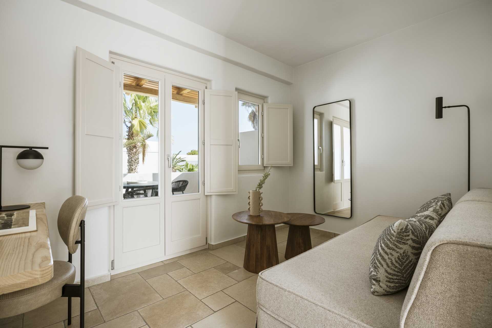 Superiorsvit med balkong eller terrass. Rummen har en sovrumsdel och en vardagsrumsdel i öppen planlösning. En dubbelsäng. Möjlighet till extrabädd i bäddsoffa. Wifi, luftkonditionering och deponering ingår. Kylskåp. Vattenkokare samt kaffe och te. Nespresso kaffemaskin - kapslar ingår vid ankomsten, påfyllning mot avgift. Tv med internationella kanaler. Badrockar och tofflor. Hårtork. Badrum med dusch och wc. Städning 7 ggr/vecka.