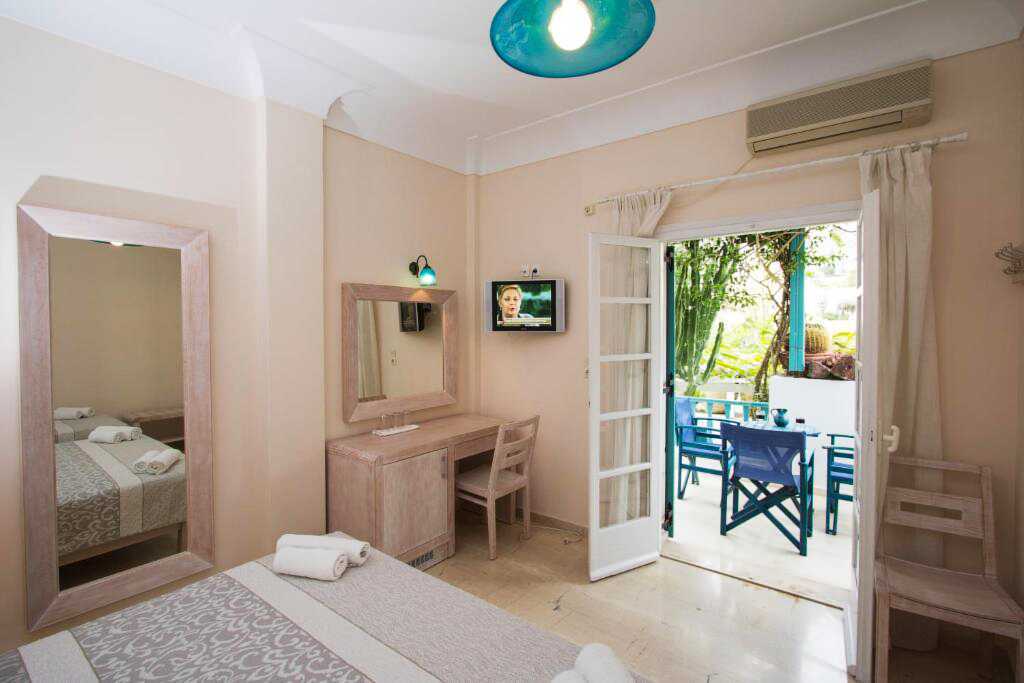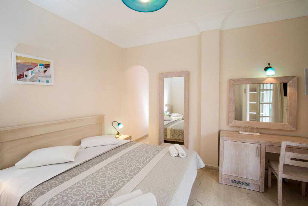 Standardrum med balkong eller terrass. En dubbelsäng eller två enkelsängar. Wifi och luftkonditionering ingår. Deponering mot avgift. Kylskåp. Tv med internationella kanaler. Hårtork. Badrum med dusch och wc. Städning 6 ggr/vecka.