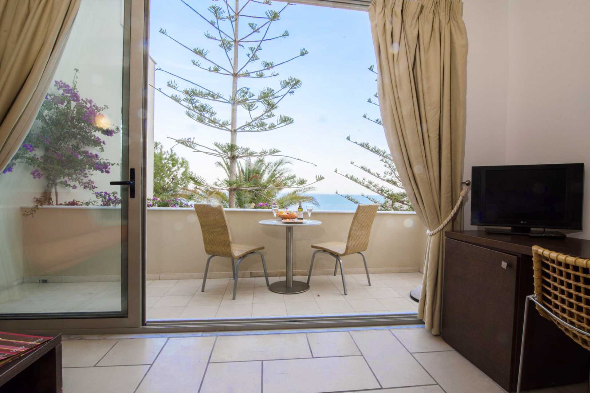 Juniorsvit med balkong eller terrass. En dubbelsäng eller två enkelsängar. Möjlighet till extrabädd i bäddsoffa. Kostnadsfritt wifi, luftkonditionering och deponering. Kylskåp. Tv med internationella kanaler. Badrock och tofflor. Hårtork. Badrum med dusch samt wc. Städning 7 ggr/vecka. Barn under två år räknas in i maxantalet personer i rummet.