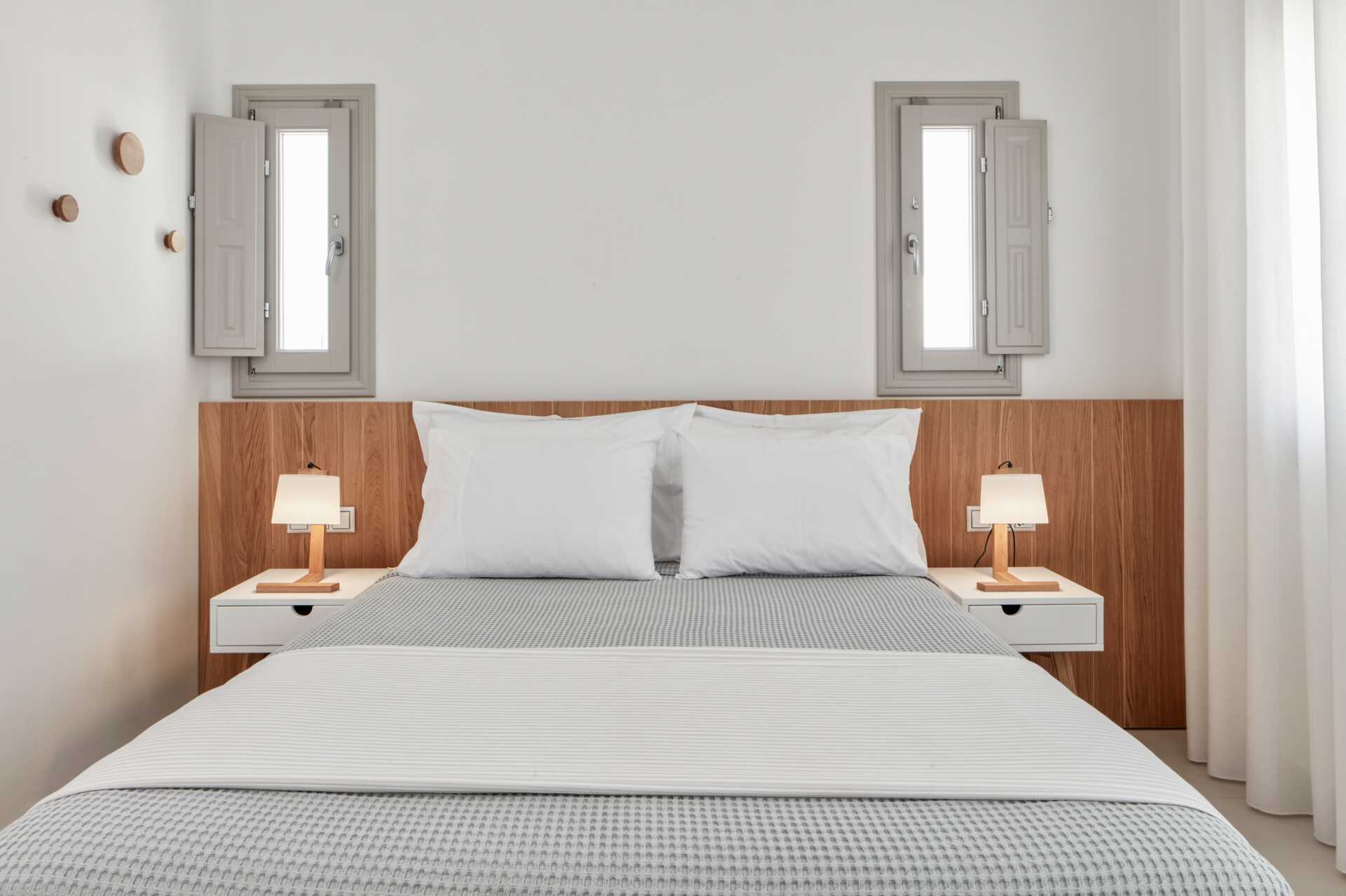 Dubbelrum med balkong eller terrass, vissa med begränsad havsutsikt och vissa som vetter mot havet. Rummen som vetter mot havet har också delvis havsutsikt och ligger närmast stranden. En dubbelsäng eller två enkelsängar. Wifi, luftkonditionering och deponering ingår. Kylskåp. Vattenkokare samt kaffe och te. Tv med internationella kanaler. Badrockar och tofflor. Hårtork. Badrum med dusch och wc. Städning 7 ggr/vecka.