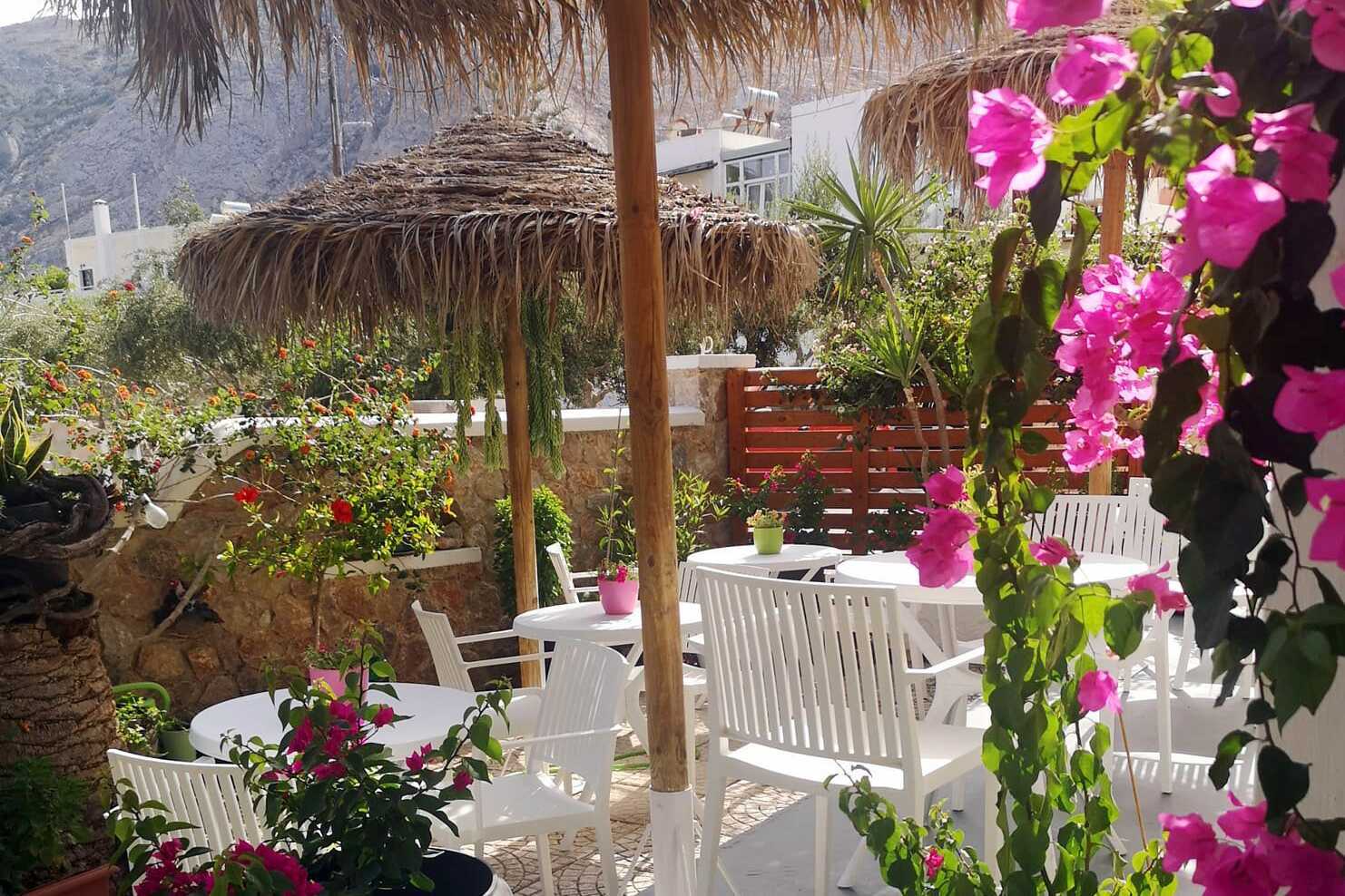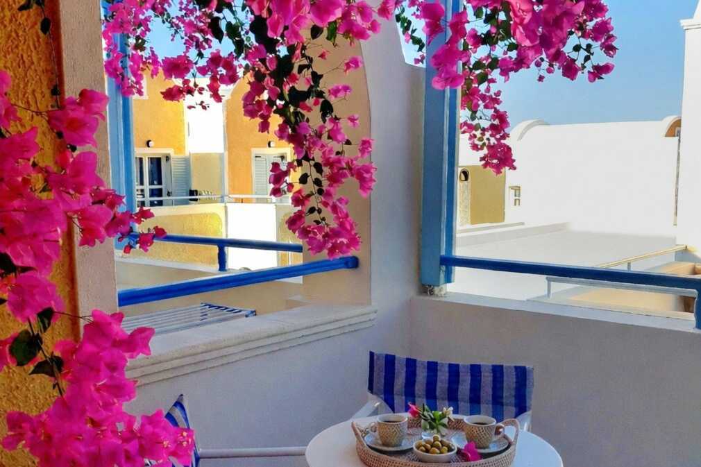 Restauranger, barer, butiker och nöjesliv väntar runt knuten. Vill du se och upptäcka den vackra ön finns en busshållplats strax utanför hotellet. Det är ca 8 kilometer till Thira. Kort transfer från flygplatsen till hotellet. Begränsad lokal trafik, men närheten till flygplatsen gör att flygtrafiken kan uppfattas som störande.