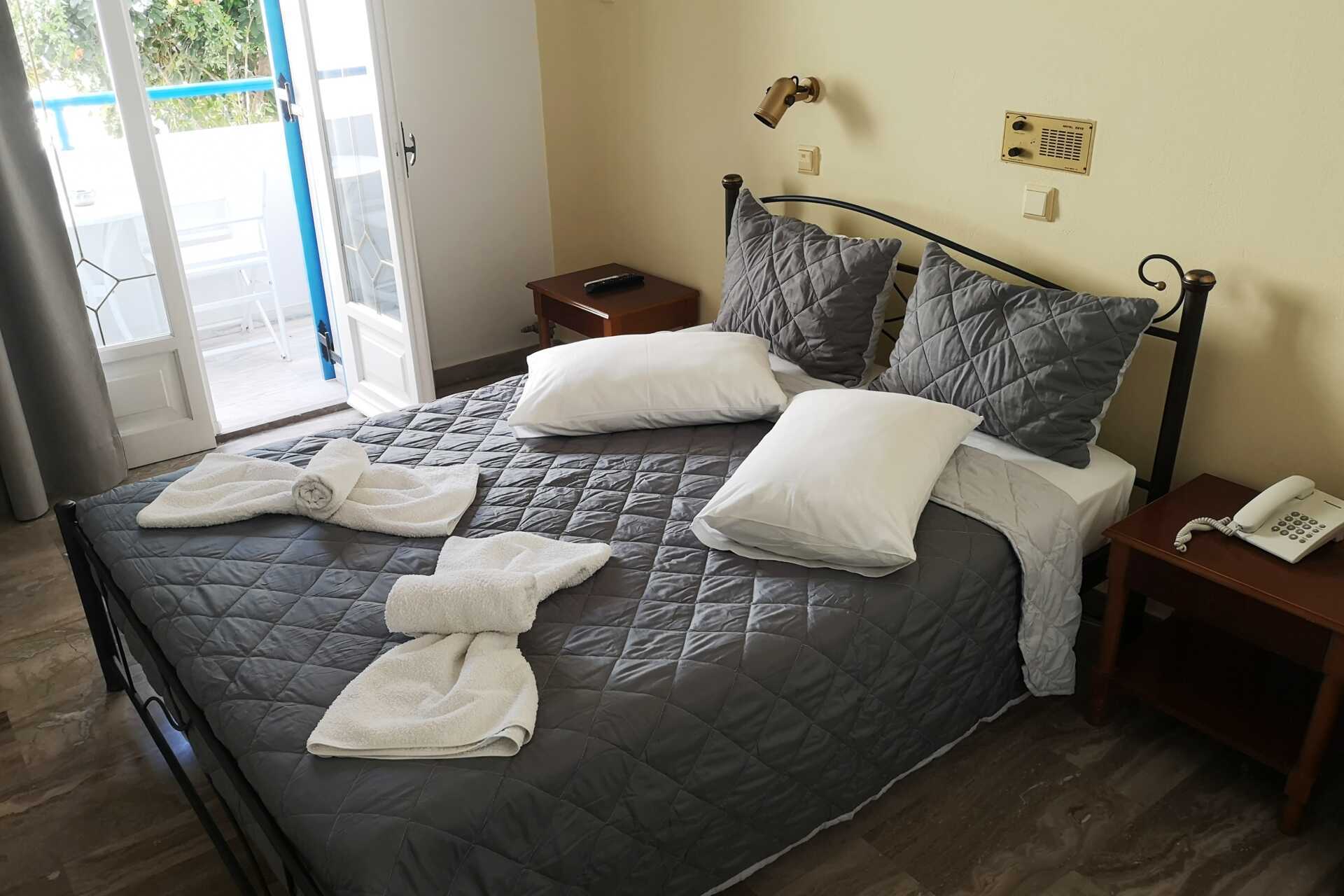 Familjerum med balkong. Ett sovrum och ett vardagsrum. En dubbelsäng. Möjlighet till extrabädd i bäddsoffa. Wifi, luftkonditionering och deponering ingår. Kylskåp. Tv med internationella kanaler. Hårtork. Badrum med dusch och wc. Städning 6 ggr/vecka.