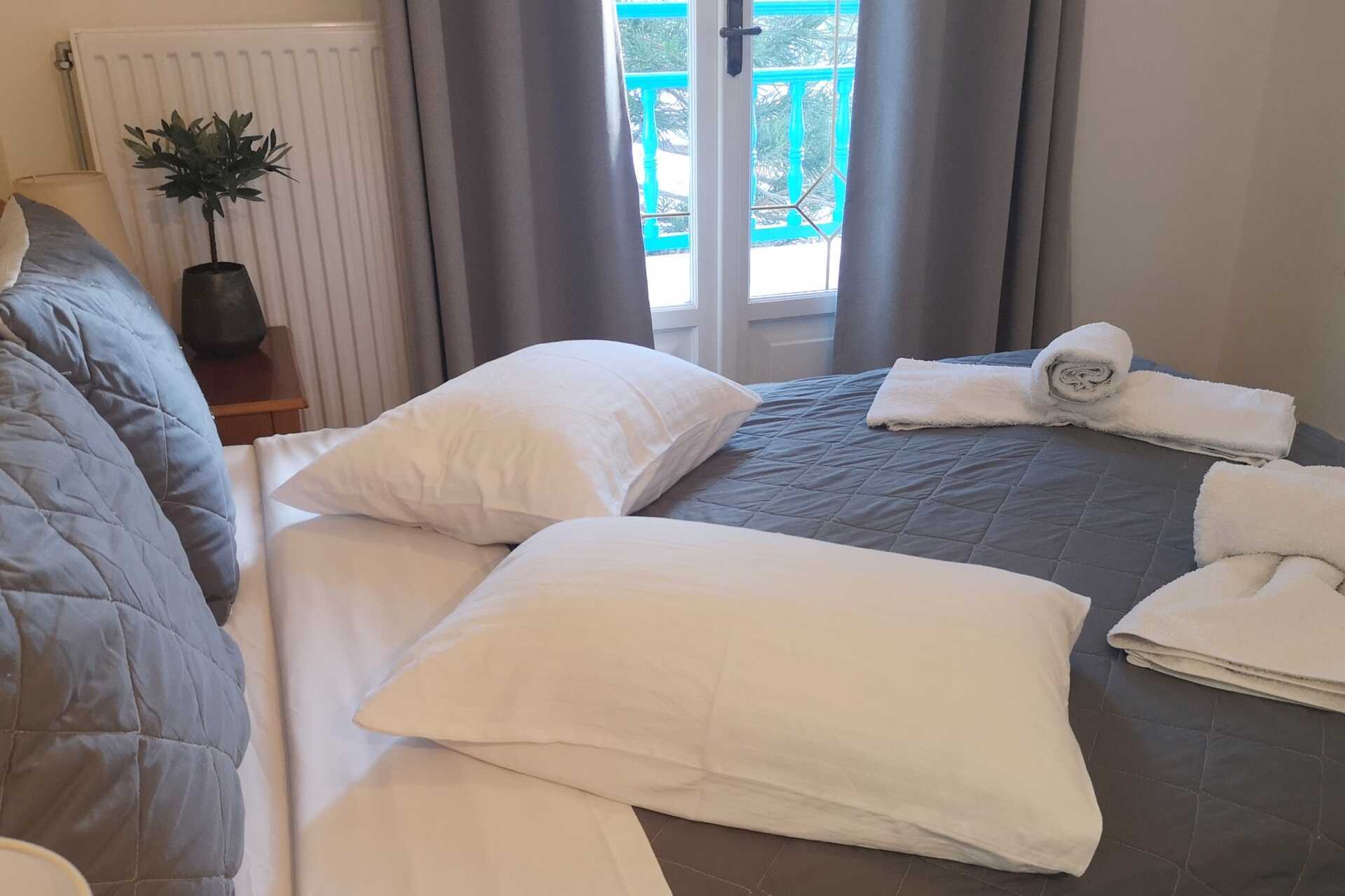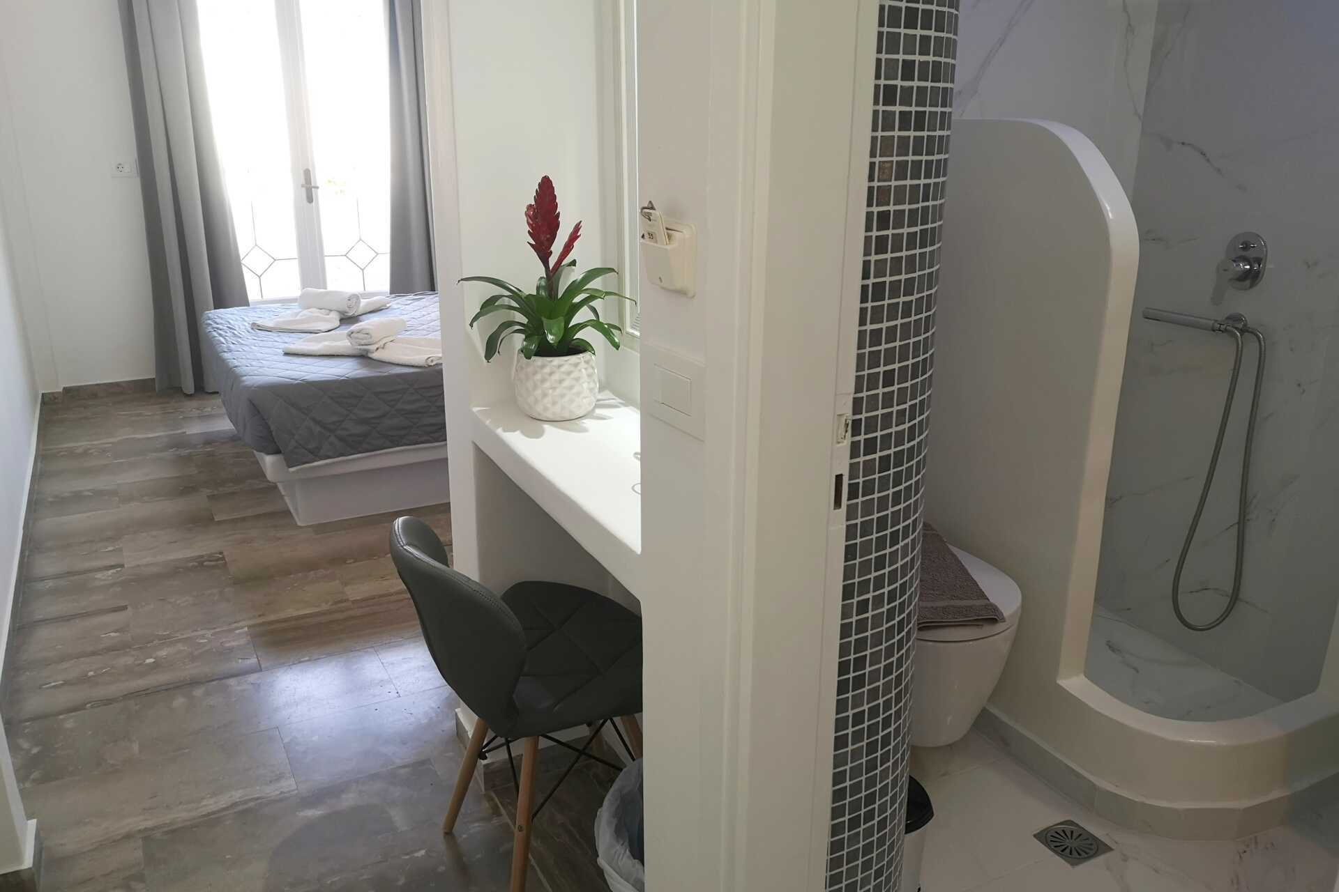 Större dubbelrum med balkong. En dubbelsäng. Wifi, luftkonditionering och deponering ingår. Kylskåp. Tv med internationella kanaler. Hårtork. Badrum med dusch och wc. Städning 6 ggr/vecka.