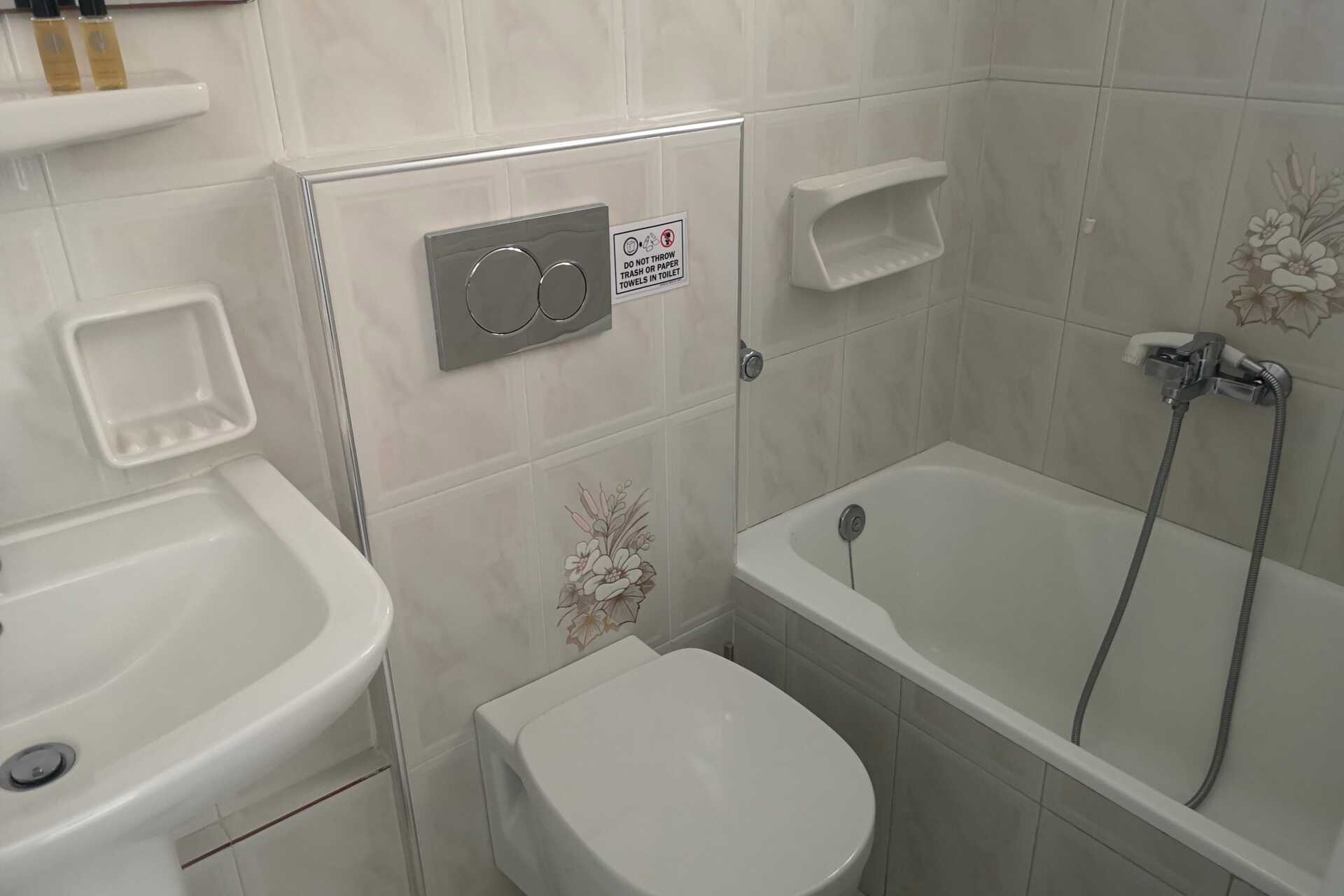 Trebäddsrum med balkong. Tre enkelsängar. Wifi, luftkonditionering och deponering ingår. Kylskåp. Tv med internationella kanaler. Hårtork. Badrum med dusch och wc. Städning 6 ggr/vecka.
