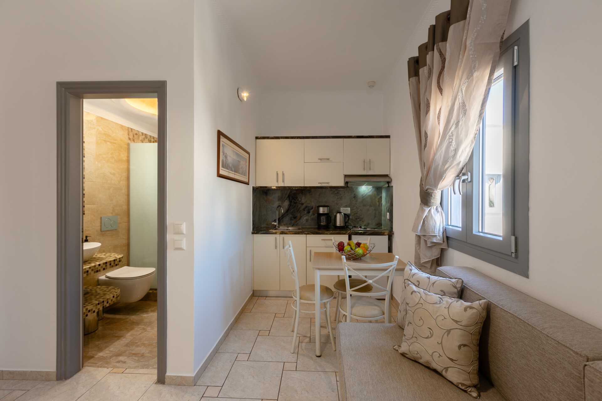 Renoverad tvårumslägenhet med balkong eller terrass. Vissa lägenheter ligger i en byggnad på andra sidan gatan från hotellets huvudbyggnad. Sovrum och kombinerat vardagsrum med minikök. En dubbelsäng eller två enkelsängar. Möjlighet till extrabäddar i två bäddsoffor. Minikök med kokplattor, kylskåp, kaffebryggare, vattenkokare och enkel köksutrustning. Wifi och luftkonditionering ingår. Lägenheterna har två luftkonditionerings aggregat, ett i sovrummet samt ett i vardagsrummet. Ett aggregat ingår, vill man få tillgång till båda är ett mot avgift. Deponering mot avgift. Tv med internationella kanaler. Hårtork. Badrum med dusch och wc. Städning 7 ggr/vecka. Barn under två år räknas in i maxantalet personer i lägenheten.