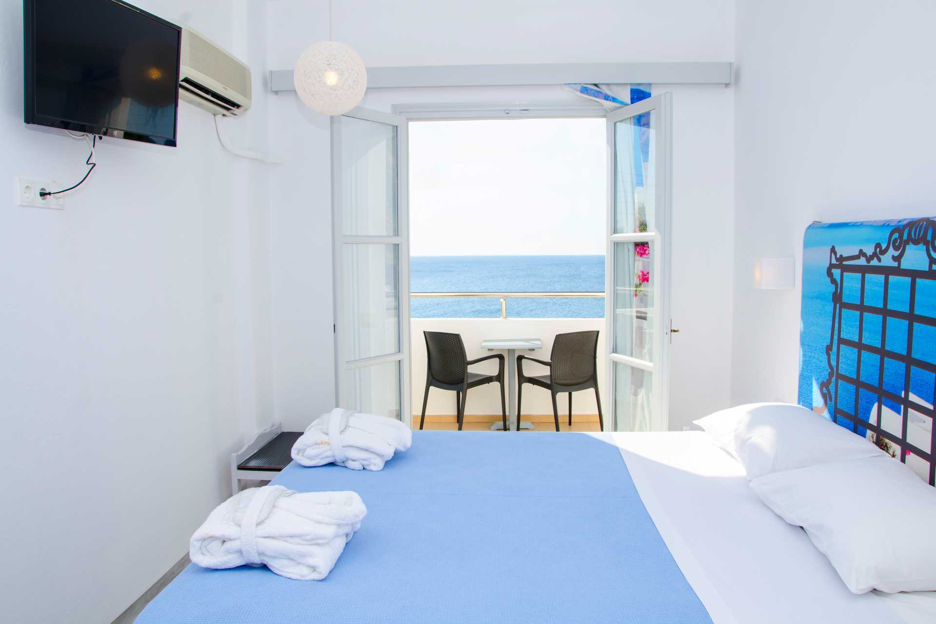 Superiorrum med balkong eller terrass och med begränsad havsutsikt. Wifi, luftkonditionering och deponering ingår. Kylskåp. Tv med internationella kanaler. Hårtork. Badrum med dusch och wc. Städning 7 ggr/vecka. Barn under två år räknas in i maxantalet personer i rummet.
