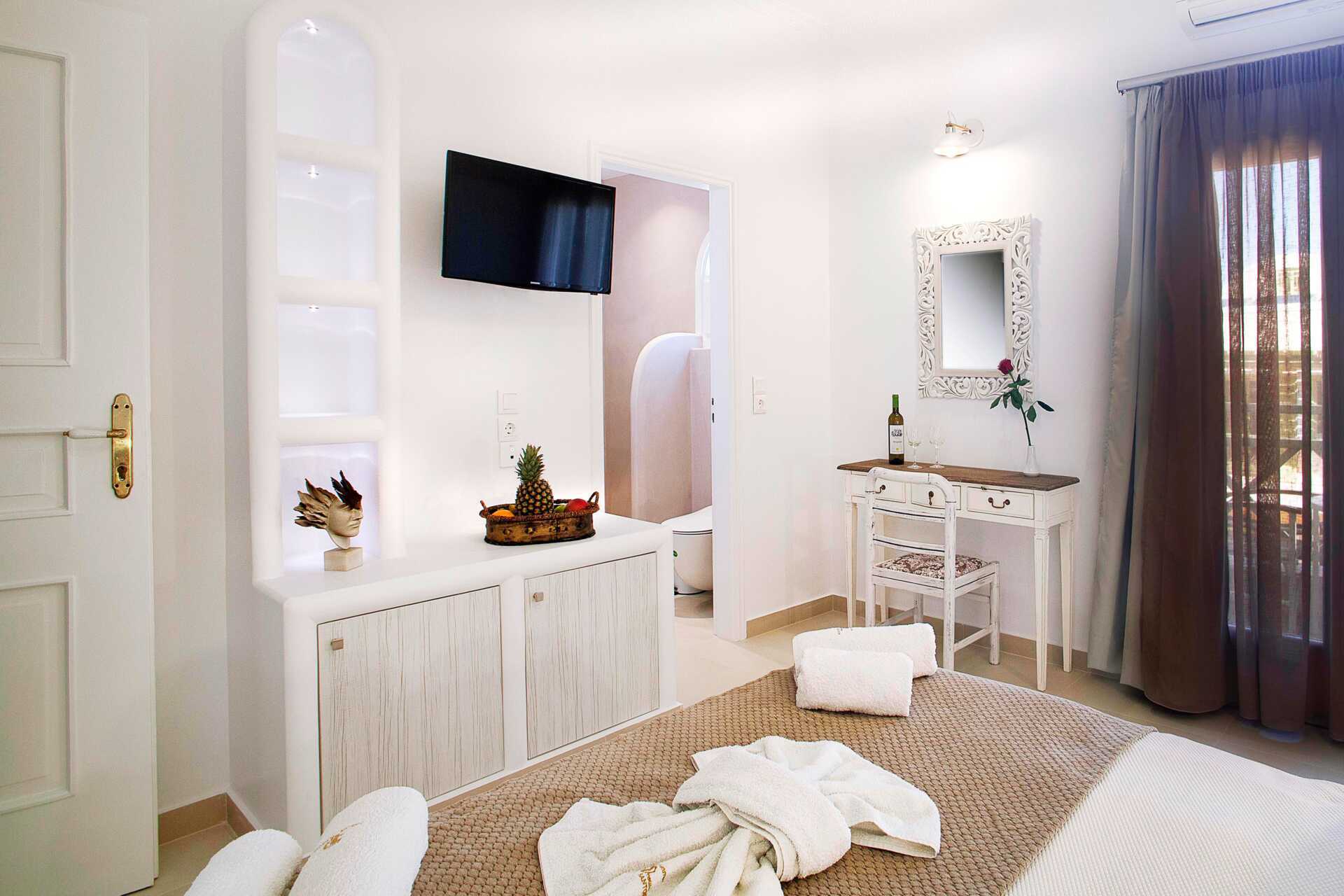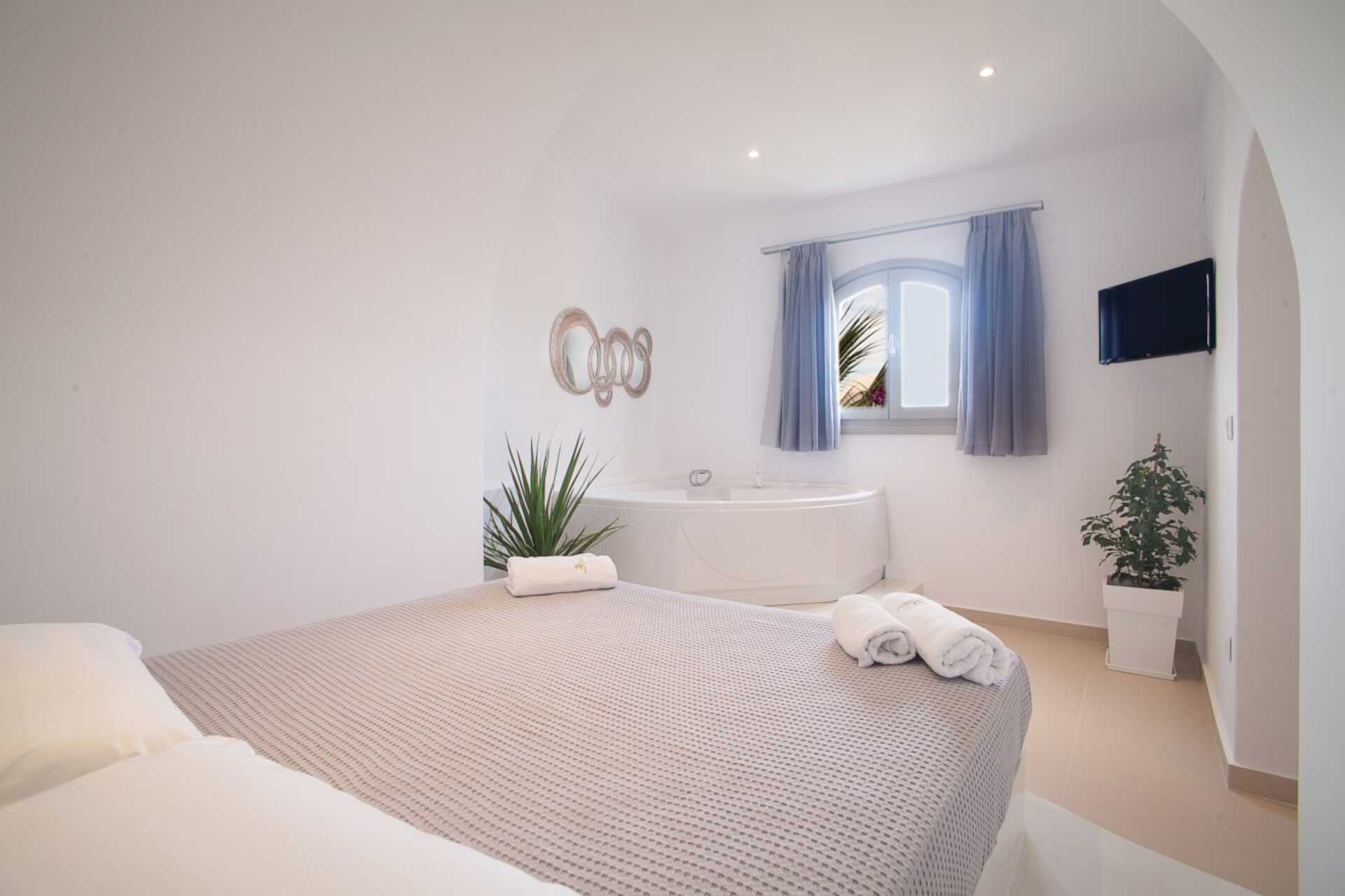 Superiorrum med jacuzzi och balkong. Superiorrummet består av en sovrumsdel med jacuzzin och en vardagsrumdel. En dubbelsäng. Möjlighet till extrabäddar i bäddsoffa. Wifi, luftkonditionering och deponering ingår. Kylskåp. Tv med internationella kanaler. Strykjärn. Hårtork. Badrum med dusch och wc. Städning 7 ggr/vecka.