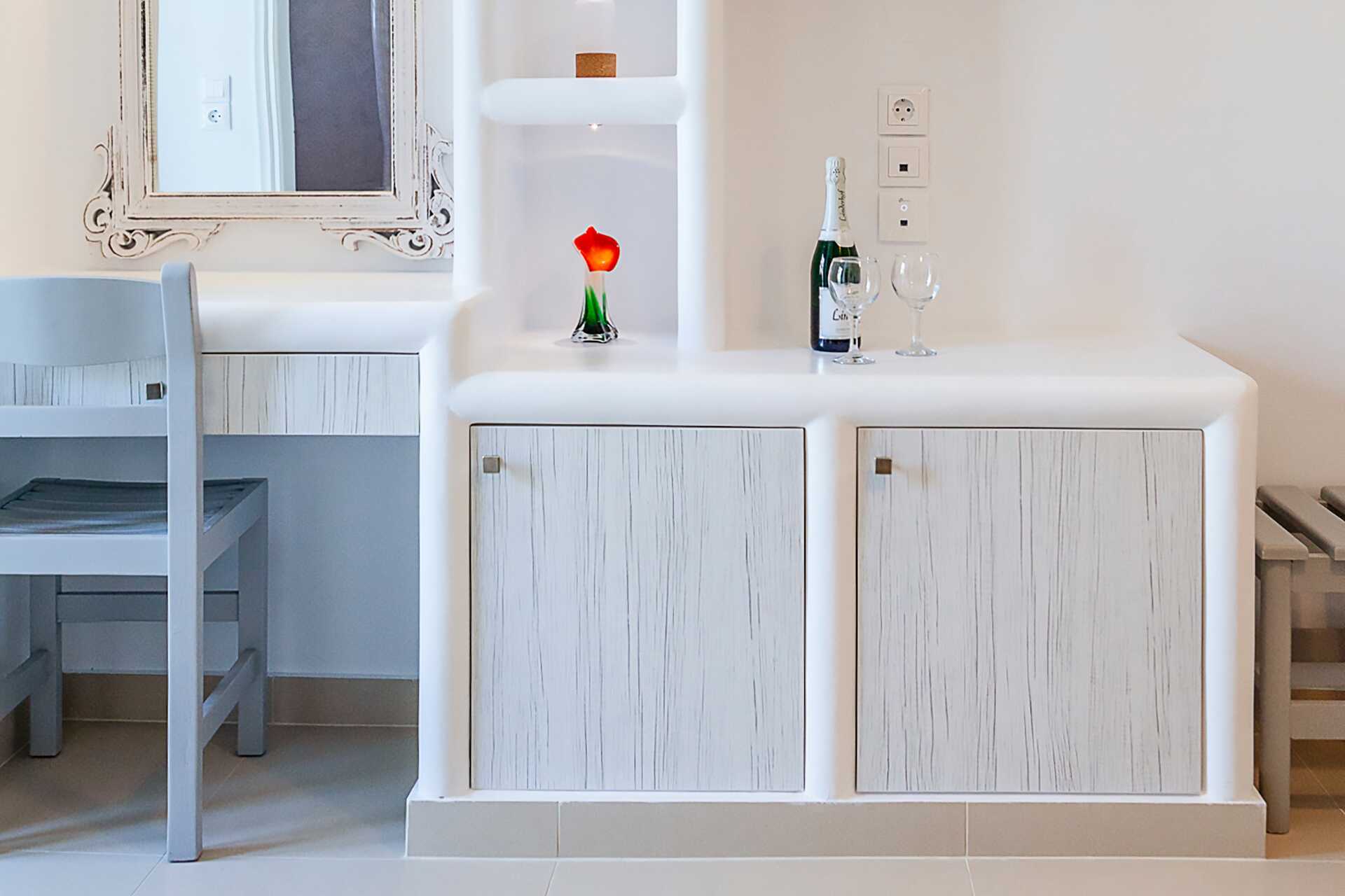 Dubbelrum med balkong, vissa med poolutsikt. Alla rum har sin egen design. En dubbelsäng. Wifi, luftkonditionering och deponering ingår. Kylskåp. Tv med internationella kanaler. Hårtork. Badrum med dusch och wc. Städning 7 ggr/vecka.