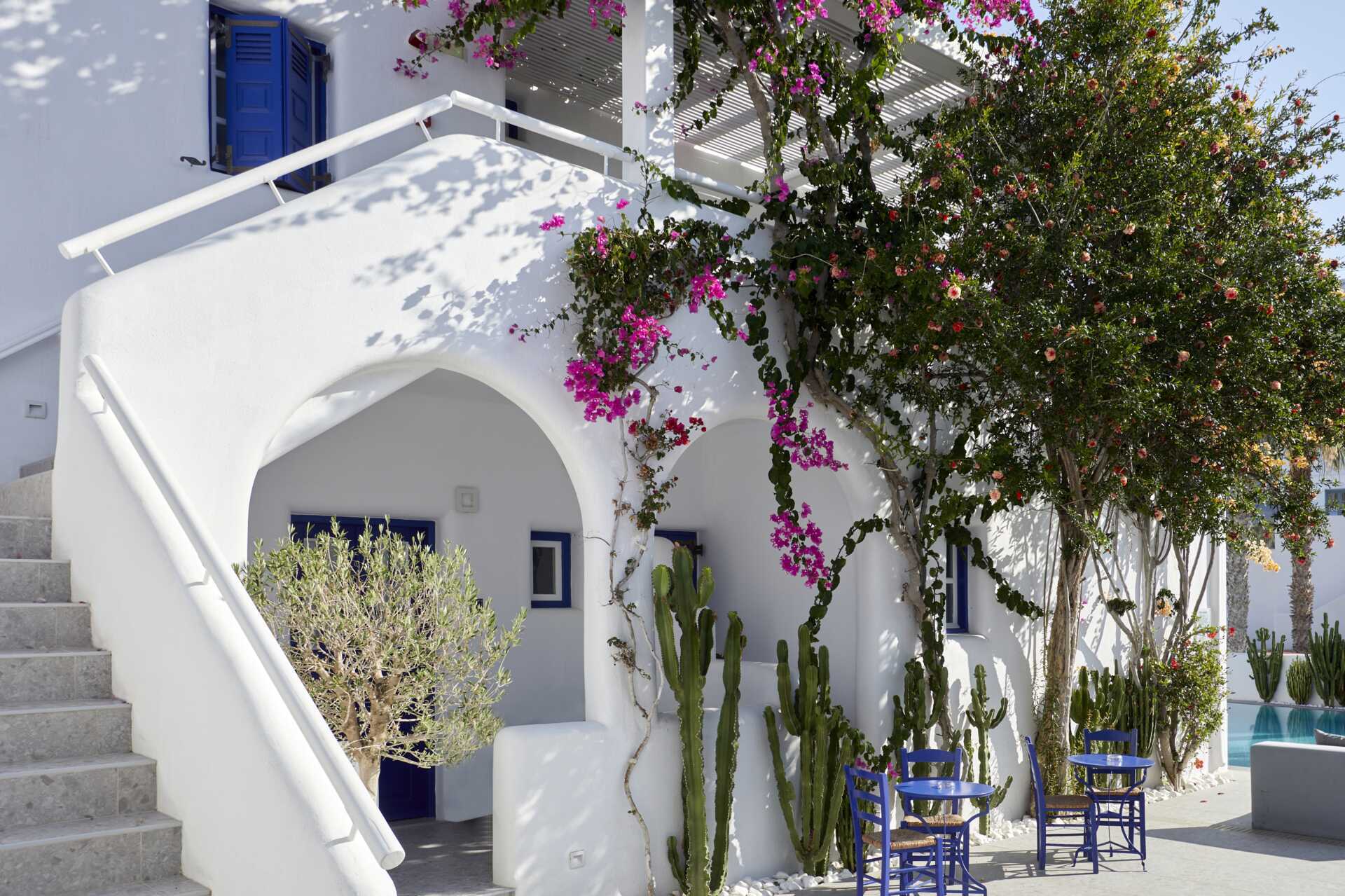 Santorini är en ö med många små och smala gator. I vissa fall kan transferbussen inte köra ända fram till hotellet, utan stannar 50-500 meter från hotellet. Bagaget transporteras inte.