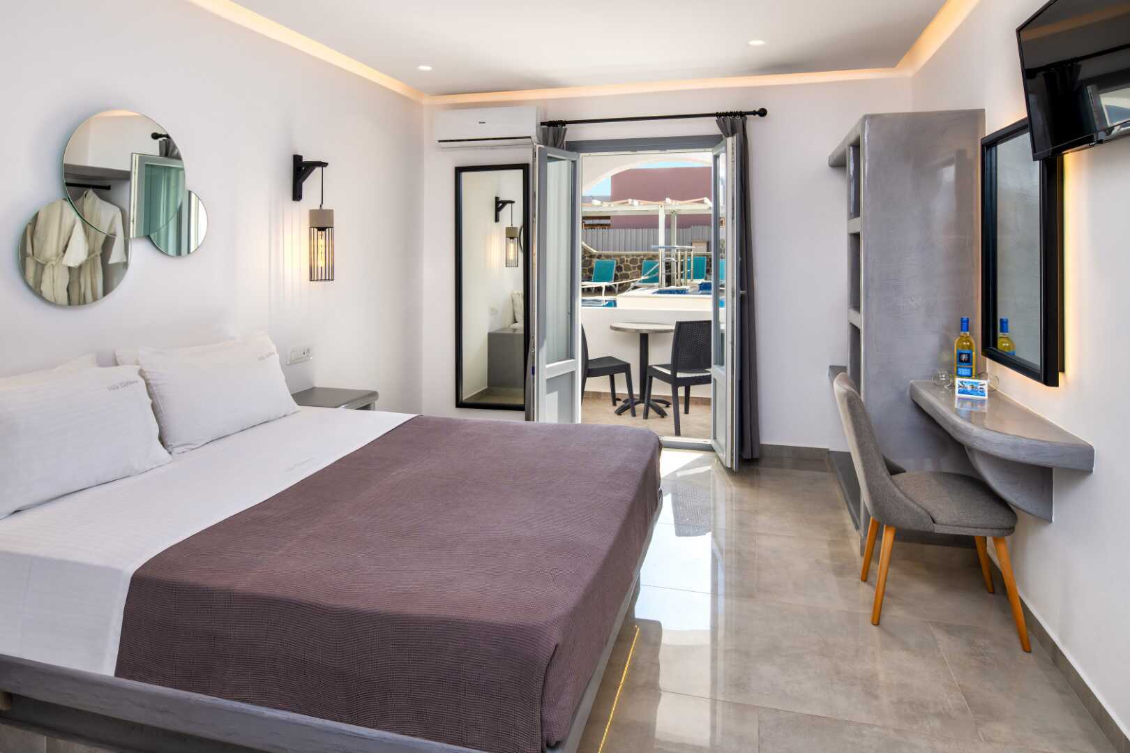 Enrumslägenhet superior med balkong eller terrass. Kombinerat sovrum med minikök. Två enkelsängar eller en dubbelsäng alternativt en dubbelsäng och en enkelsäng. Minikök med kokplattor, kylskåp, vattenkokare och enkel köksutrustning. Wifi, luftkonditionering och deponering ingår. Tv med internationella kanaler. Hårtork. Badrum med dusch och wc. Städning 7 ggr/vecka.