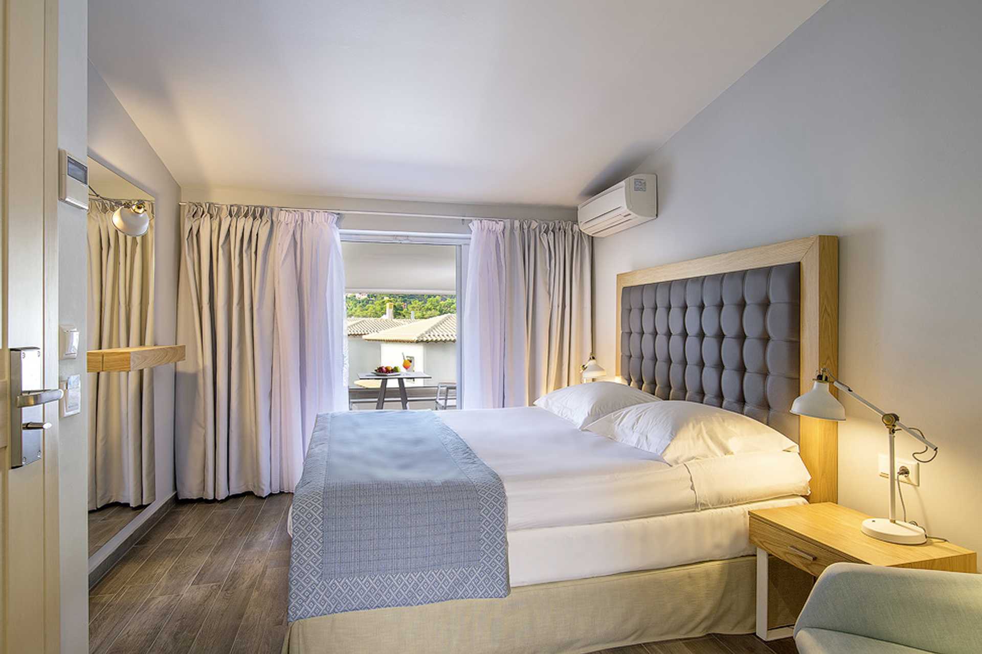 Dubbelrum med balkong eller markterrass. En dubbelsäng. Möjlighet till extrabädd i enkelsäng. Wifi och deponering ingår. Luftkonditionering mot avgift. Kylskåp. Tv med internationella kanaler. Hårtork. Små badrum med dusch och wc. Städning 7 ggr/vecka.