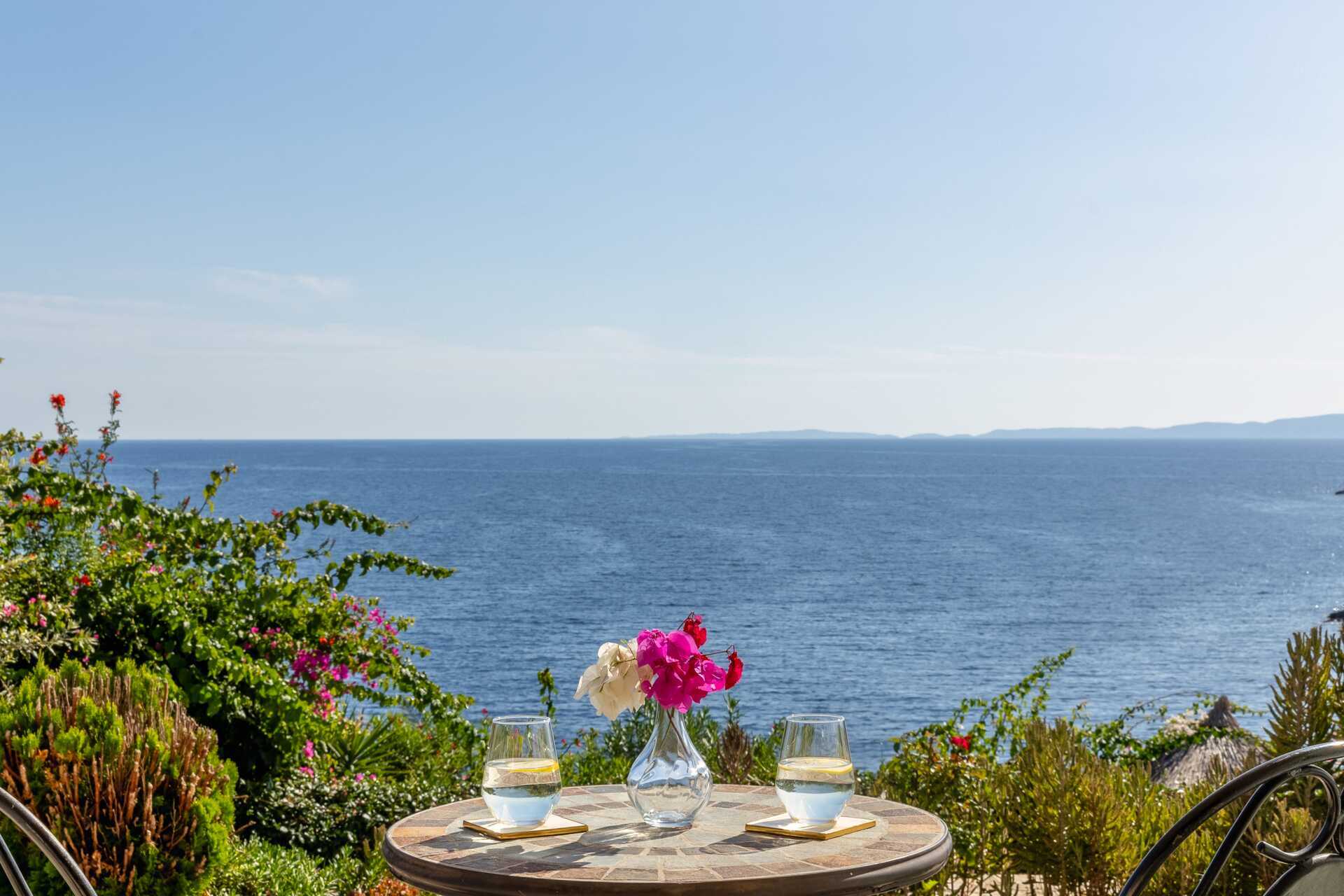 Juniorsvit med markterrass, vissa med havsutsikt och vissa med begränsad havsutsikt. Markterrassen har ingen dörr direkt från rummet, utan du når den via en utgång på sidan av byggnaden. En dubbelsäng. Möjlighet till extrabädd i bäddsoffa. Wifi, luftkonditionering och deponering ingår. Kylskåp. Vattenkokare. Tv med lokala kanaler. Badrockar. Hårtork. Badrum med badkar eller dusch samt wc. Städning 7 ggr/vecka.