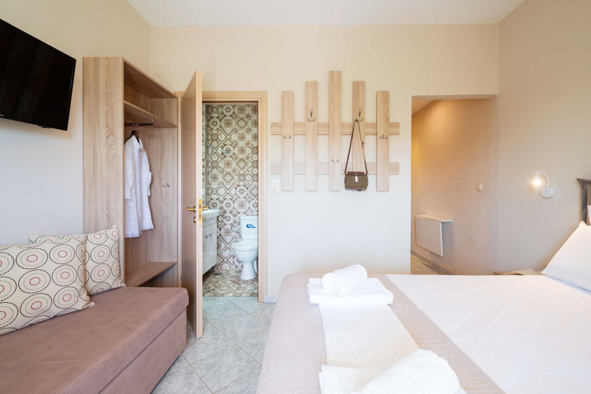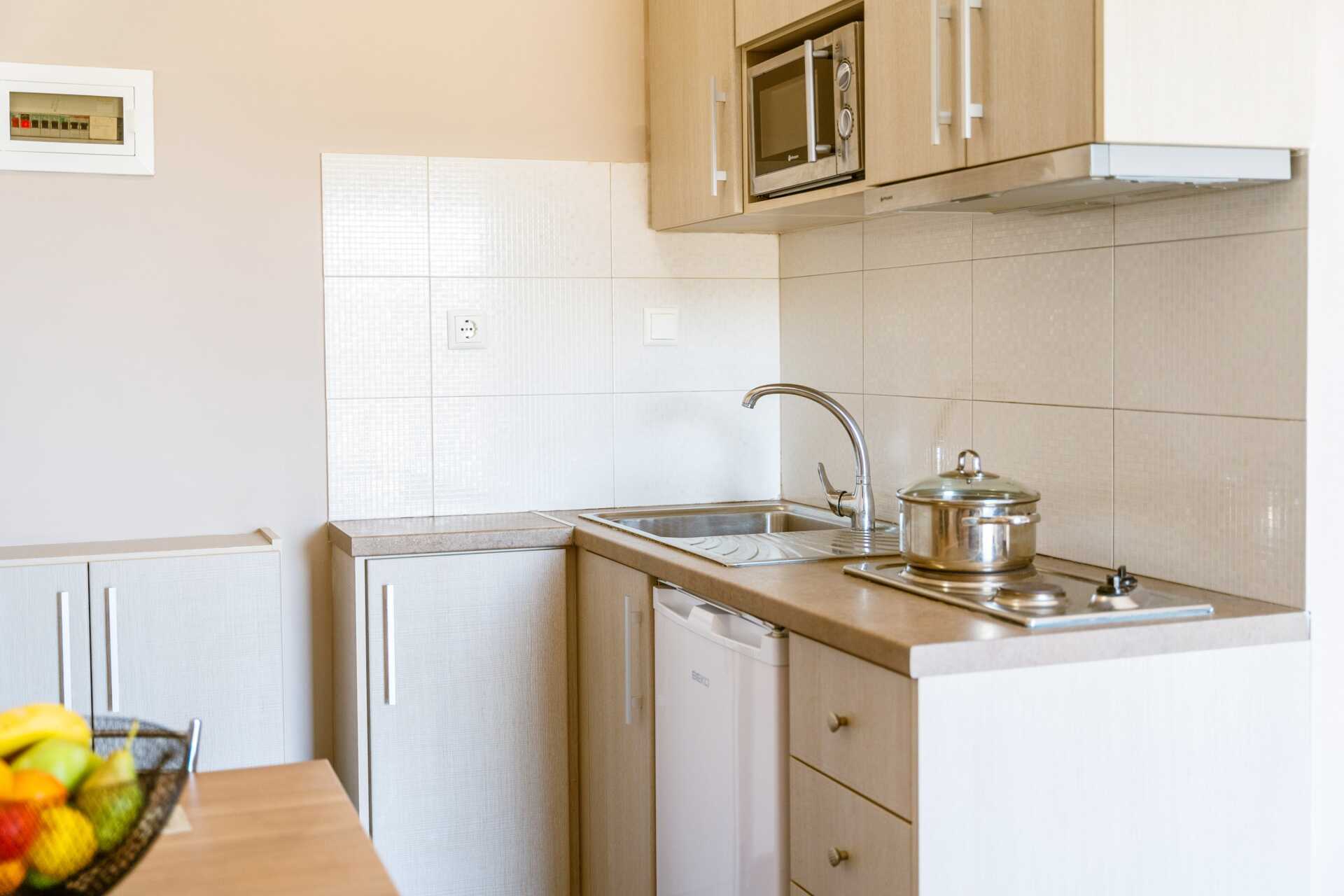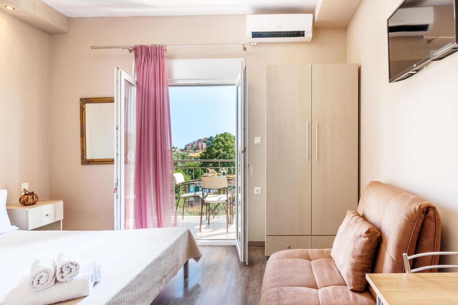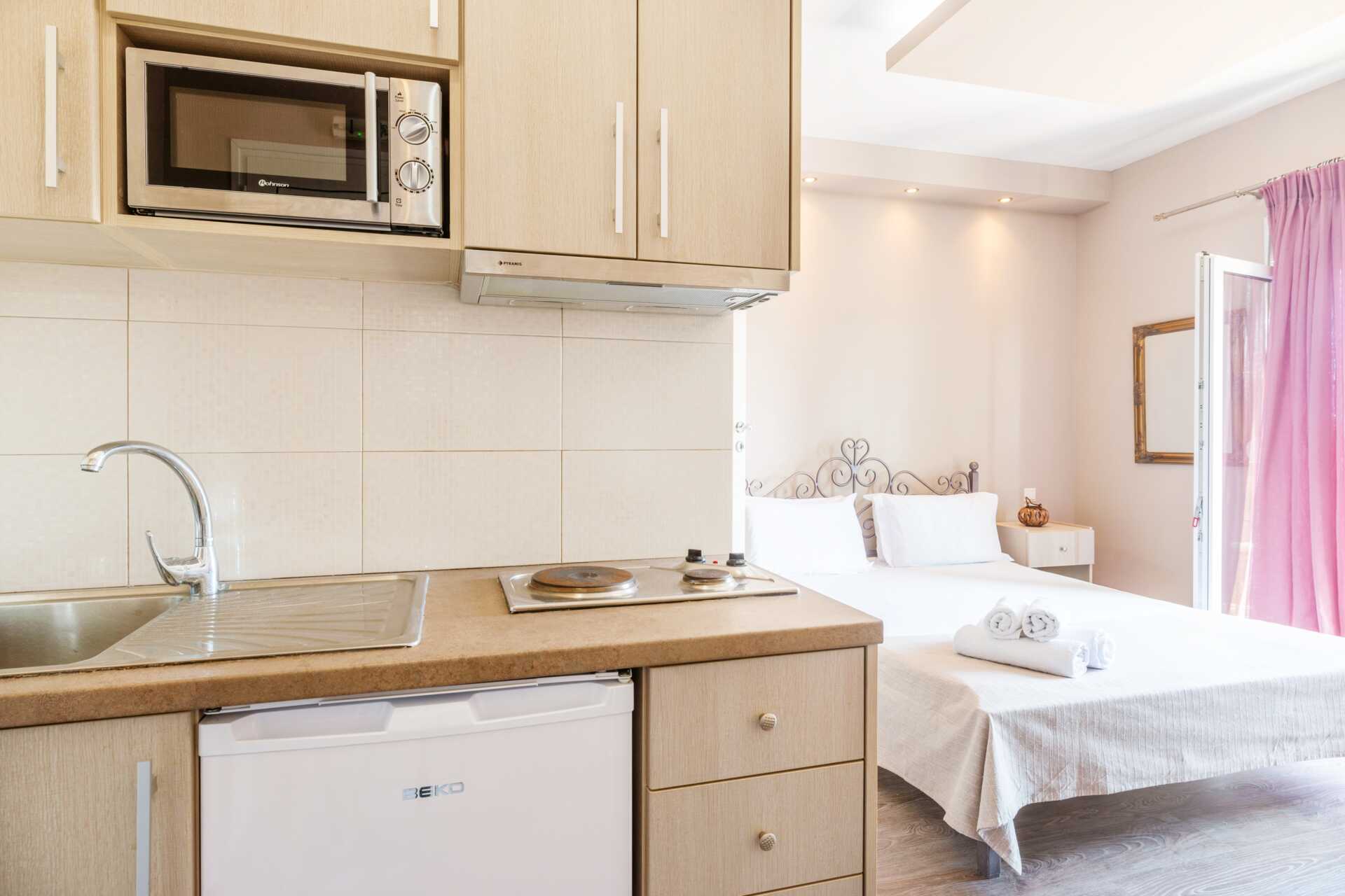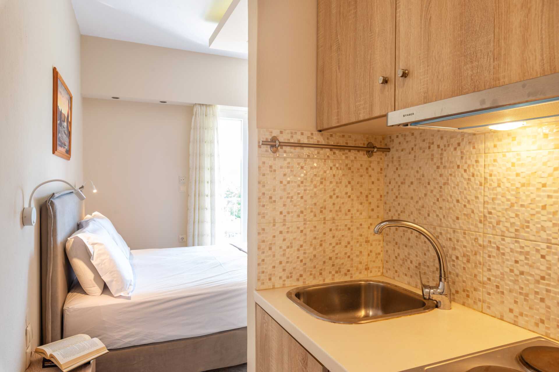 Enrumslägenhet med balkong. Sovrum kombinerat med minikök. En dubbelsäng eller två enkelsängar. Möjlighet till extrabädd i bäddbar fåtölj. Minikök med kokplattor, kylskåp, mikrovågsugn och enkel köksutrustning. Wifi och luftkonditionering ingår. Tv med lokala kanaler. Badrum med dusch och wc. Städning 6 ggr/vecka.
