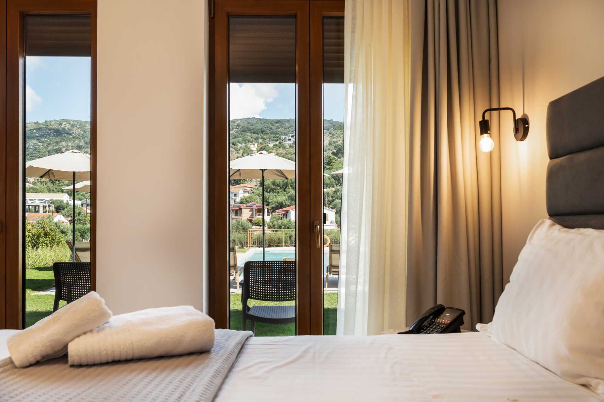 Poolområdet utgör hjärtat på lägenhetshotellet Helios. Här väntar en liten, inbjudande pool omgiven av solstolar och parasoller, perfekt för sköna, lata dagar i solen. Bara en kort promenad från hotellet hittar du Sivotas centrum och flera härliga stränder. Missa inte de charmiga tavernorna som kantar hamnen – här hittar du den genuina grekiska atmosfären!