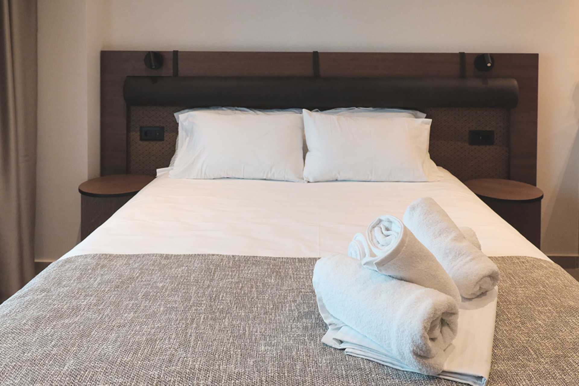 Familjerum i etage med balkong och poolutsikt. Öppen planlösning mellan våningarna. I entréplan finns ett vardagsrum med bäddsoffa och en trappa upp finns en dubbelsäng. Wifi, luftkonditionering och deponering ingår. Minibar med läsk, vatten samt snacks ingår vid ankomst. Vattenkokare samt kaffe och te. Kaffemaskin. Kokplattor. Tv med internationella kanaler. Badrockar och tofflor. Hårtork. Badrum med dusch och wc. Städning 7 ggr/vecka.