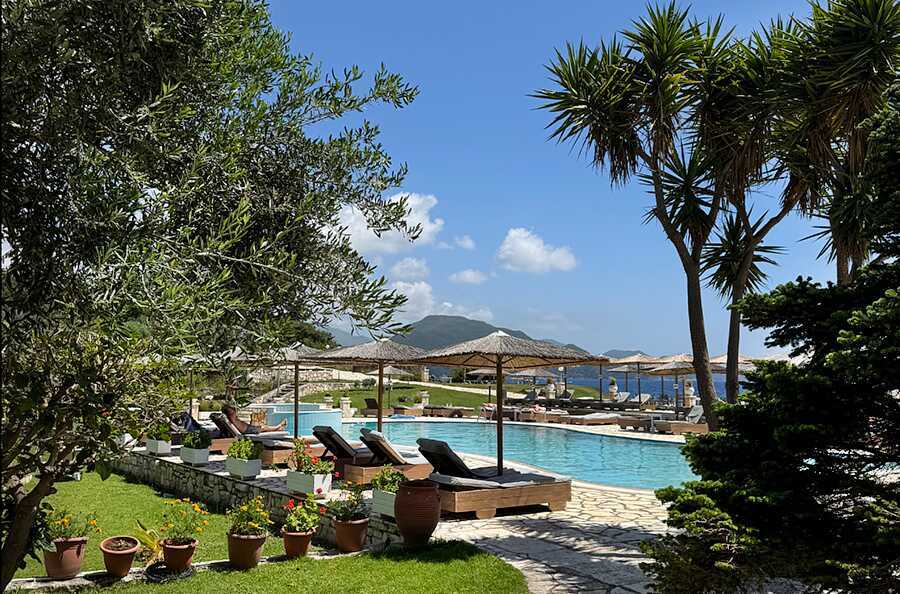 Här finns ett poolområde med en pool som bjuder på fantastisk utsikt över havet. Vid poolen finns solstolar och parasoller att låna, samt en poolbar som också erbjuder enklare rätter under dagen.