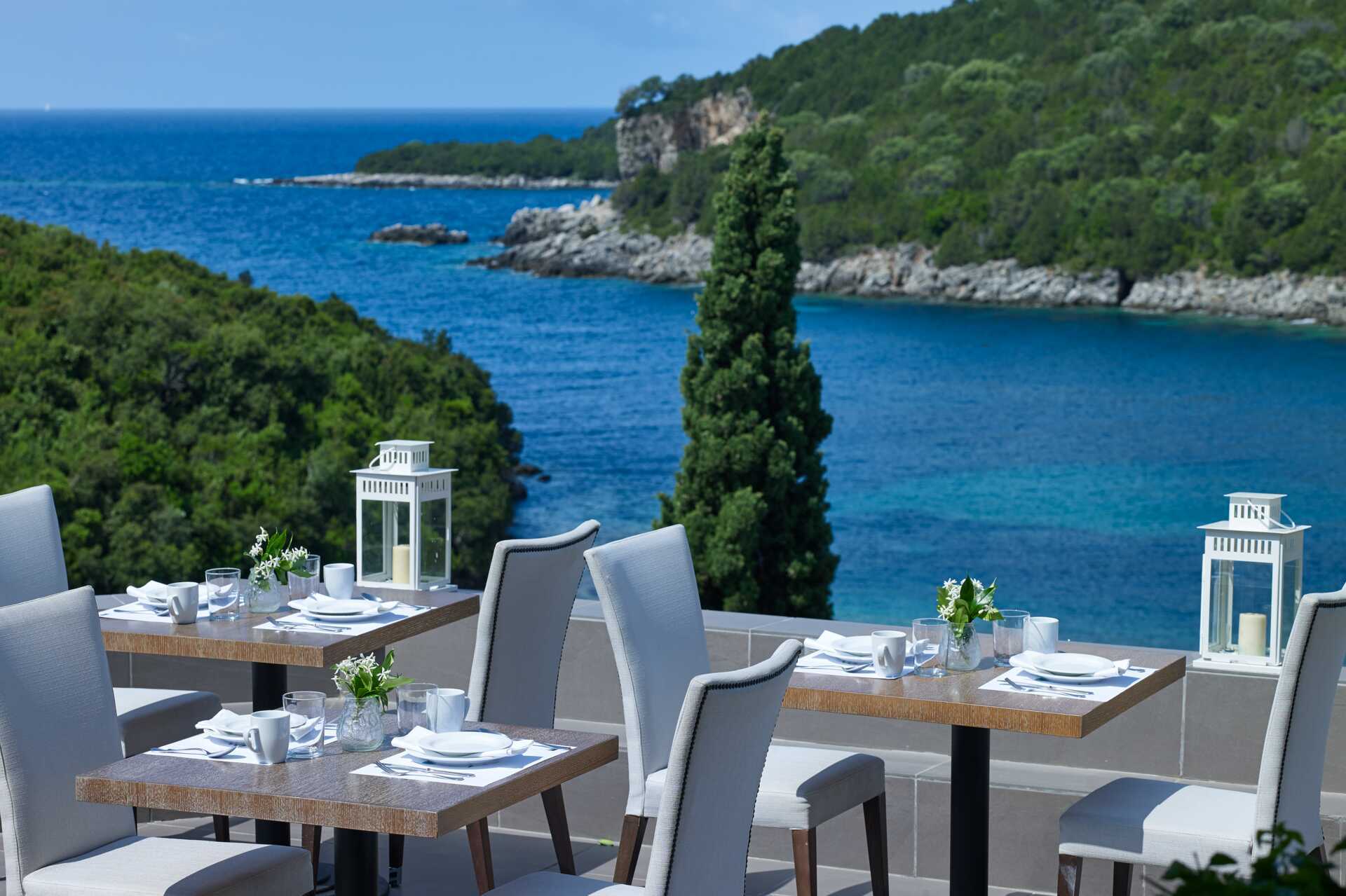 Hotellet har en kombinerad poolbar och restaurang och den vackra havsutsikten ingår. Här serveras frukostbuffé, lunch och snacks samt middag.