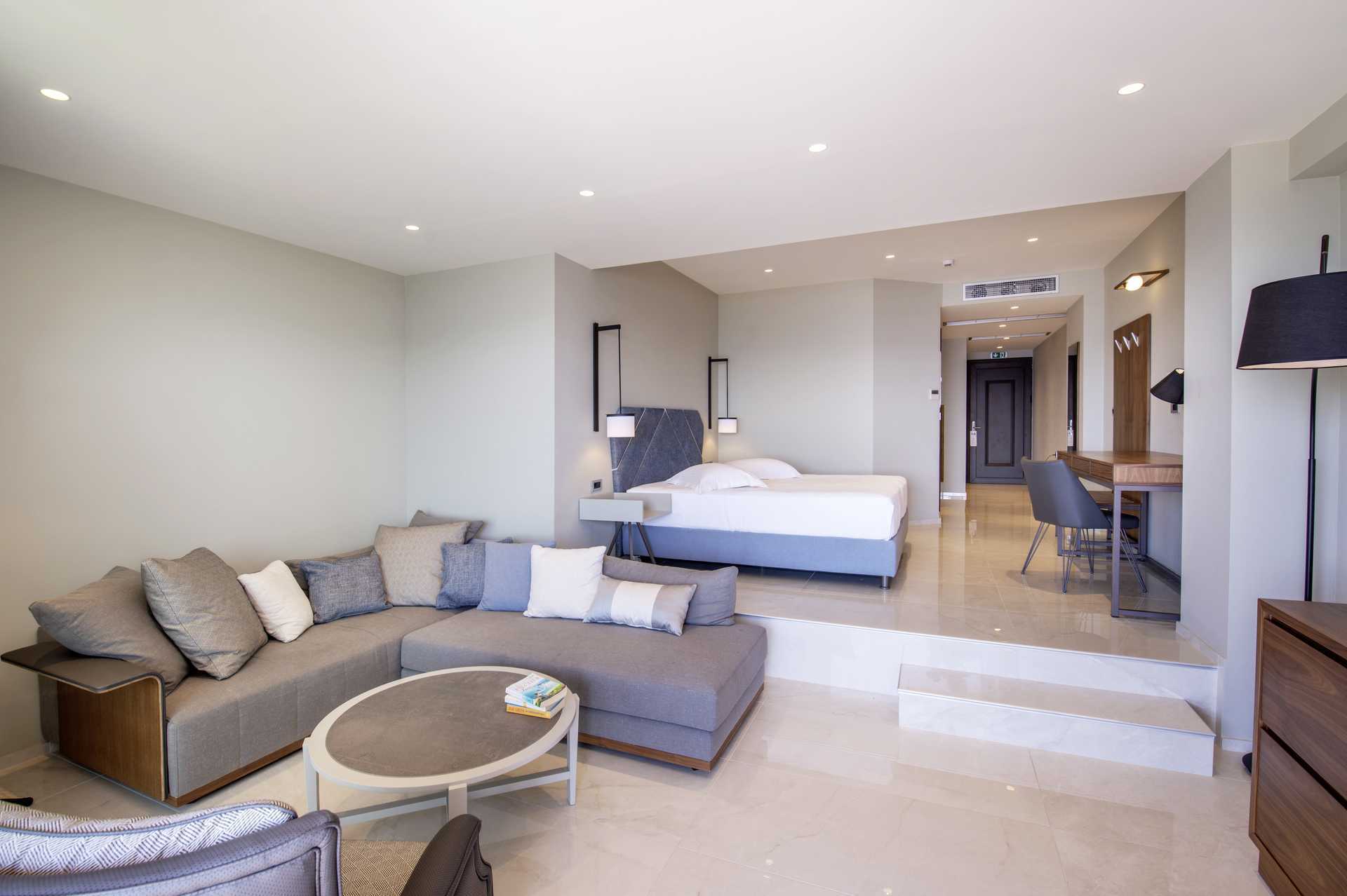 Svit med balkong och havsutsikt eller begränsad havsutsikt. En dubbelsäng eller två enkelsängar. Möjlighet till extrabädd i enkel säng. Wifi, luftkonditionering och deponering ingår. Minibar. Tv med internationella kanaler. Badrockar och tofflor. Hårtork. Badrum med dusch och wc. Balkong med havsutsikt eller begränsad havsutsikt. Städning 7 ggr/vecka.