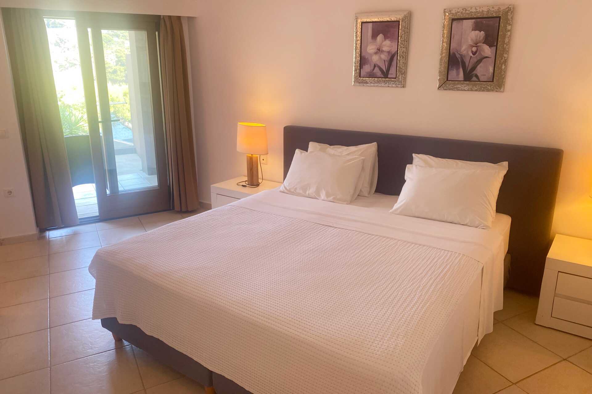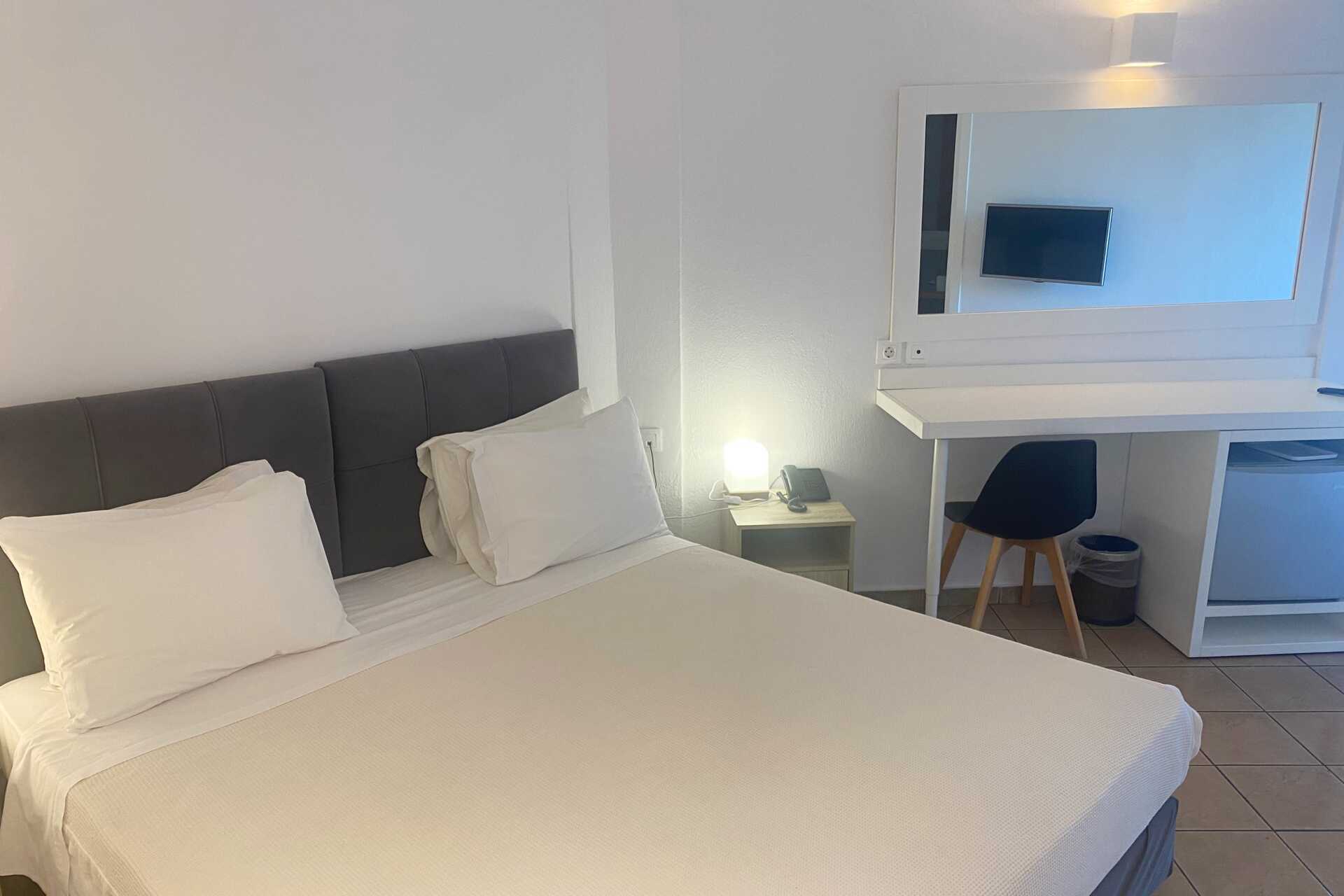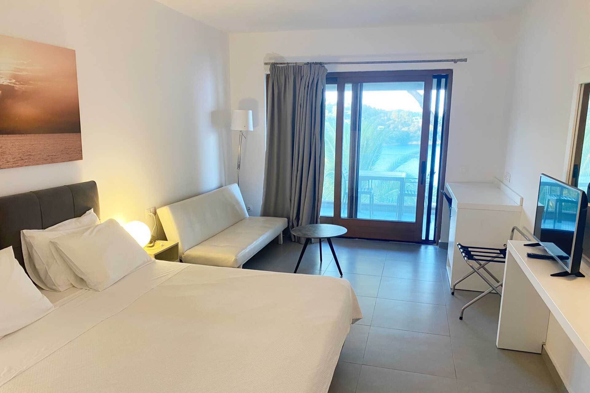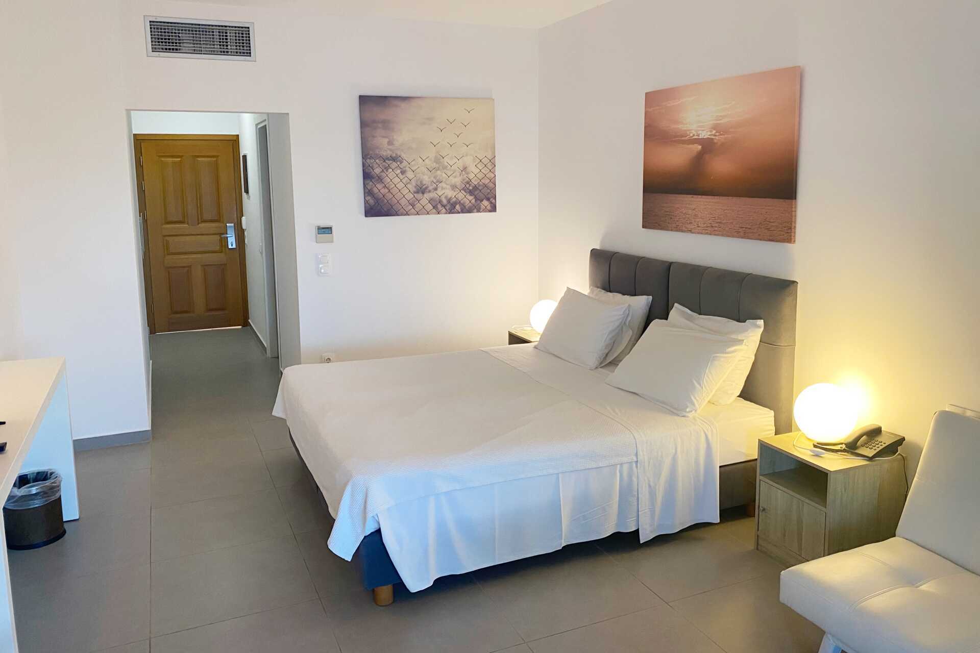 Dubbelrum med balkong eller terrass och havsutsikt. En dubbelsäng eller två enkelsängar. Wifi, luftkonditionering och deponering ingår. Kylskåp. Tv med internationella kanaler. Badrockar och tofflor. Hårtork. Badrum med badkar eller dusch samt wc. Städning 7 ggr/vecka.