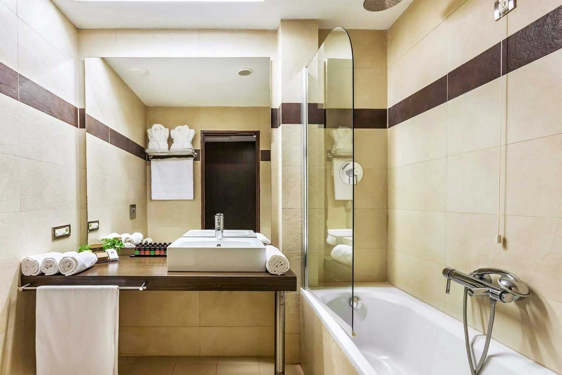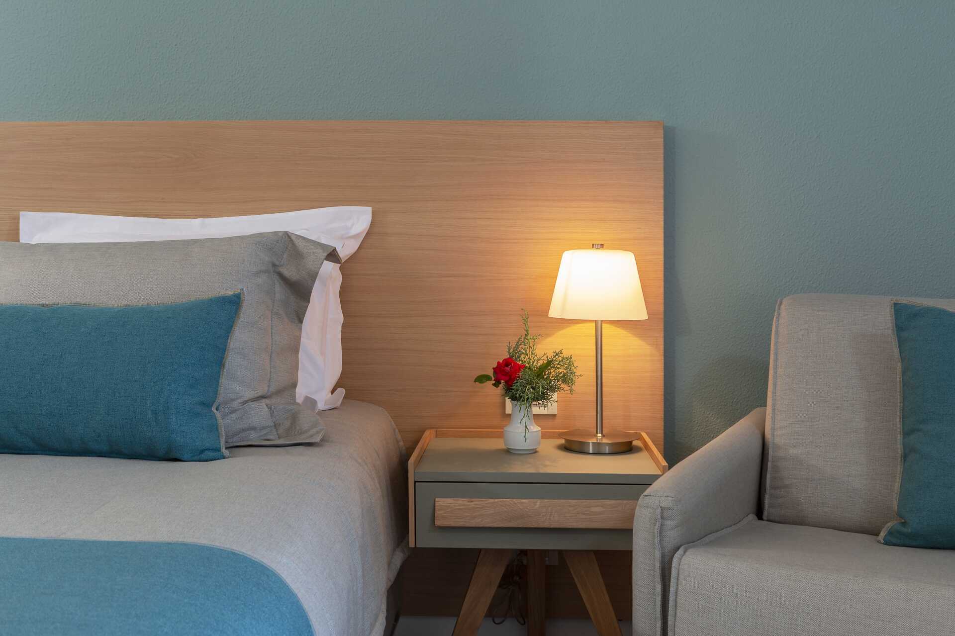 Dubbelrum med balkong eller terrass. En dubbelsäng eller två enkelsängar. Möjlighet till extrabädd i bäddbar fåtölj. Wifi, luftkonditionering och deponering ingår. Kylskåp. Vattenkokare. Tv med internationella kanaler. Hårtork. Badrum med badkar och wc. Städning 7 ggr/vecka.