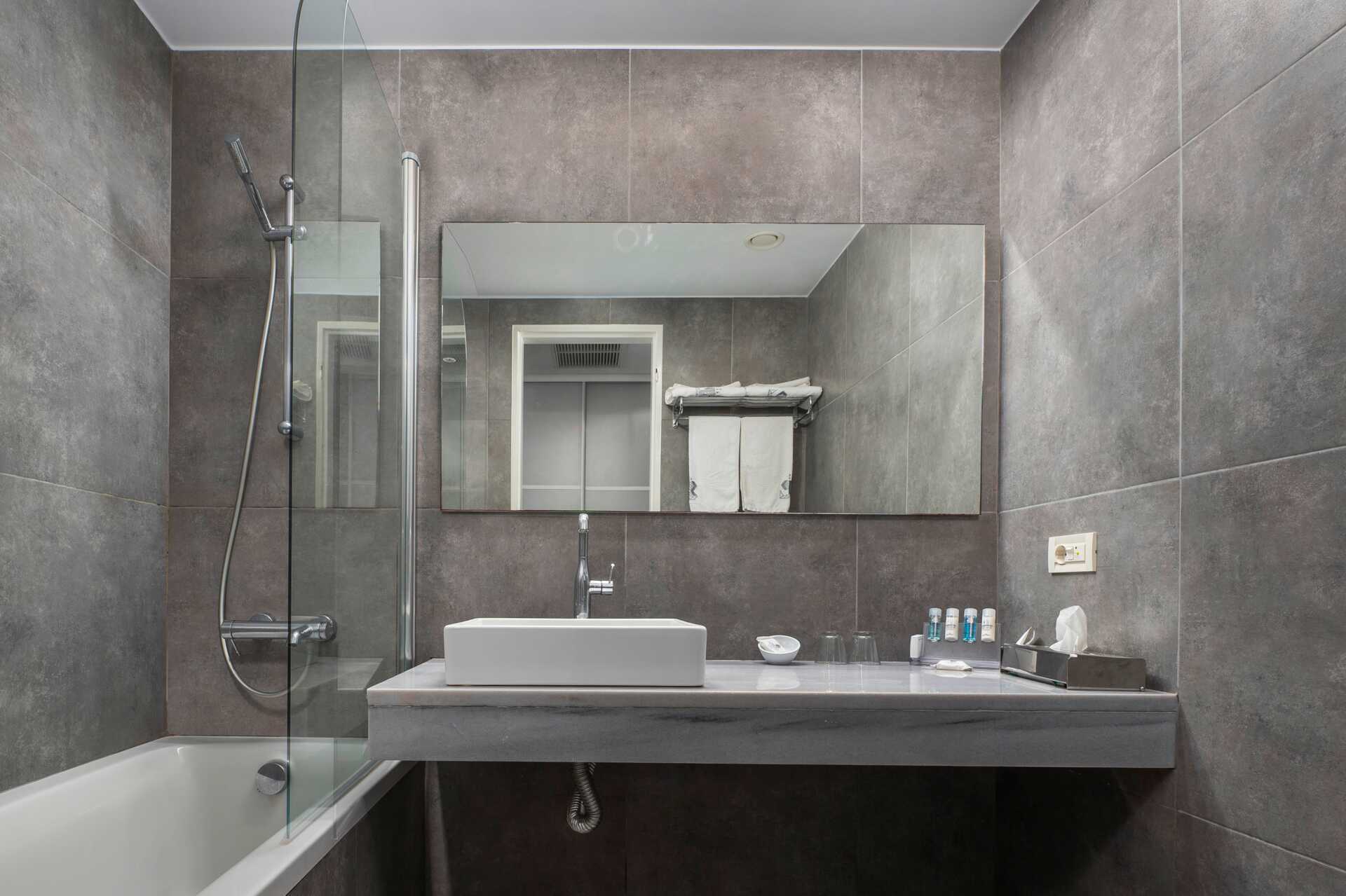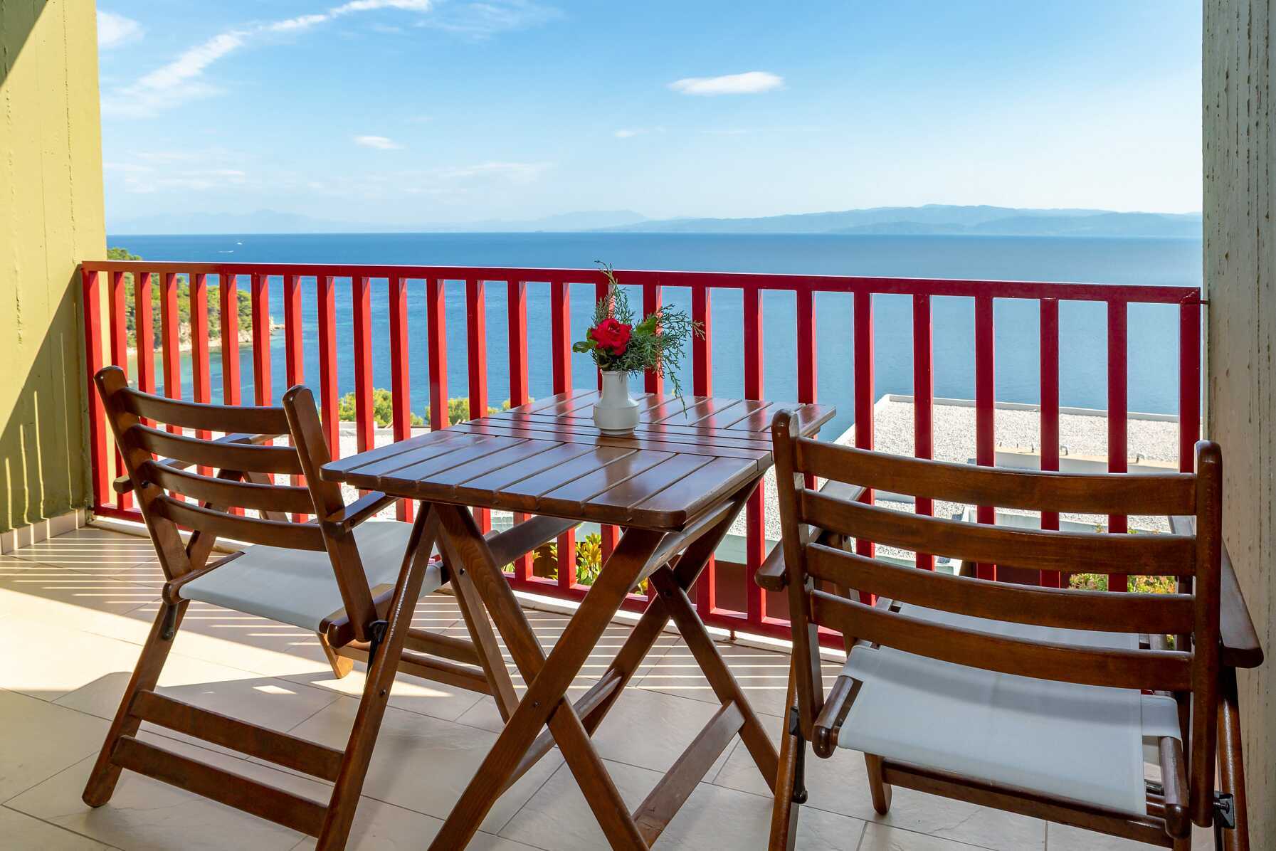 Executiverum med balkong och havsutsikt. Det finns solstolar på balkongen. En dubbelsäng eller två enkelsängar. Möjlighet till extrabädd i bäddsoffa. Wifi, luftkonditionering och deponering ingår. Kylskåp. Vattenkokare. Tv med internationella kanaler. Badrockar och badtofflor. Hårtork. Badrum med badkar och wc. Städning 7 ggr/vecka.