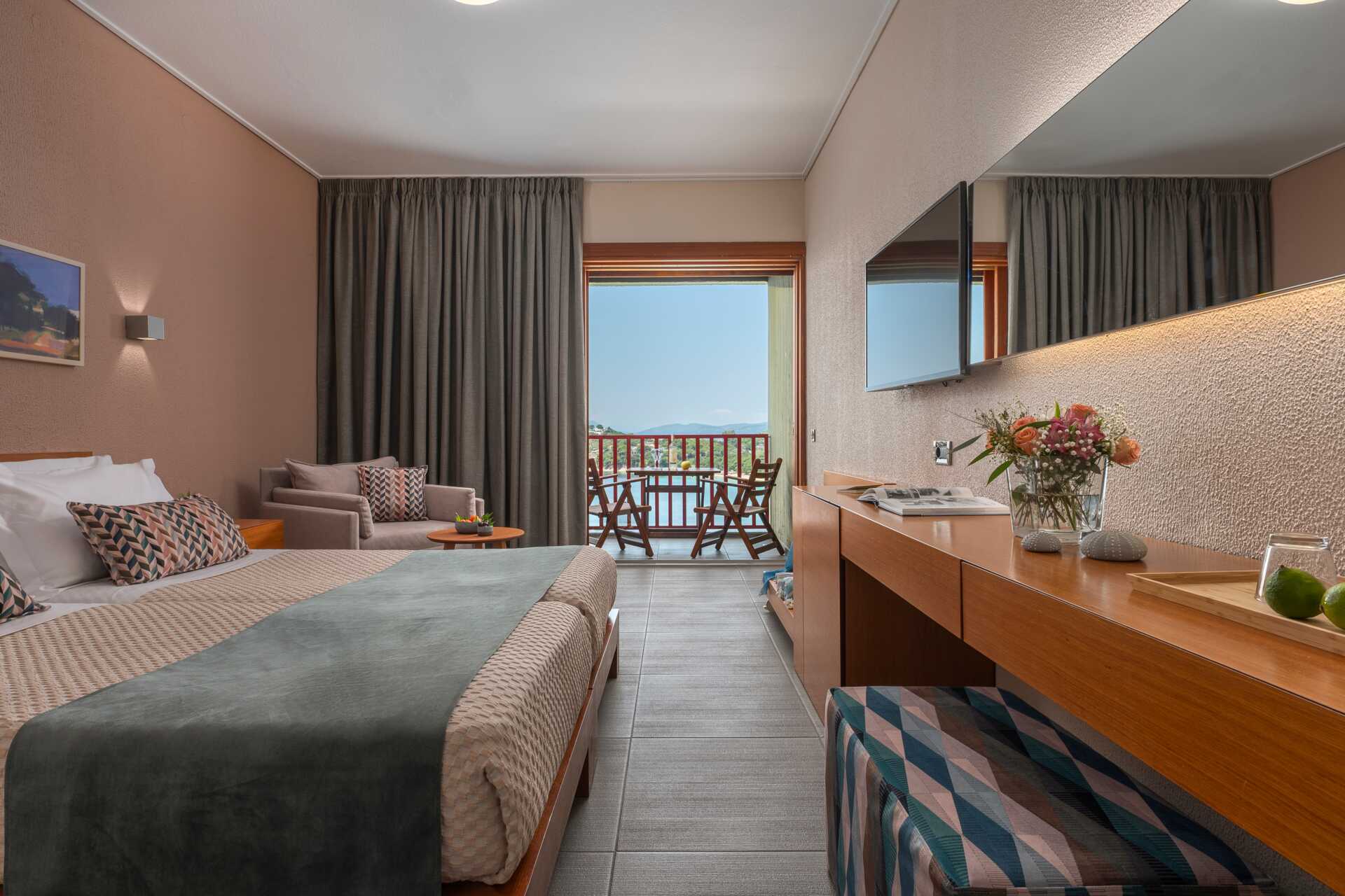 Superiorrum med balkong och havsutsikt. På balkongen finns solstolar. En dubbelsäng eller två enkelsängar. Möjlighet till extrabädd i bäddsoffa. Wifi, deponering och luftkonditionering ingår. Kylskåp. Vattenkokare samt kaffe och te. Minibar med endast alkoholfria drycker ingår. Tv med internationella kanaler. Badrockar och tofflor. Hårtork. Badrum med dusch och wc. Städning 7 ggr/vecka.