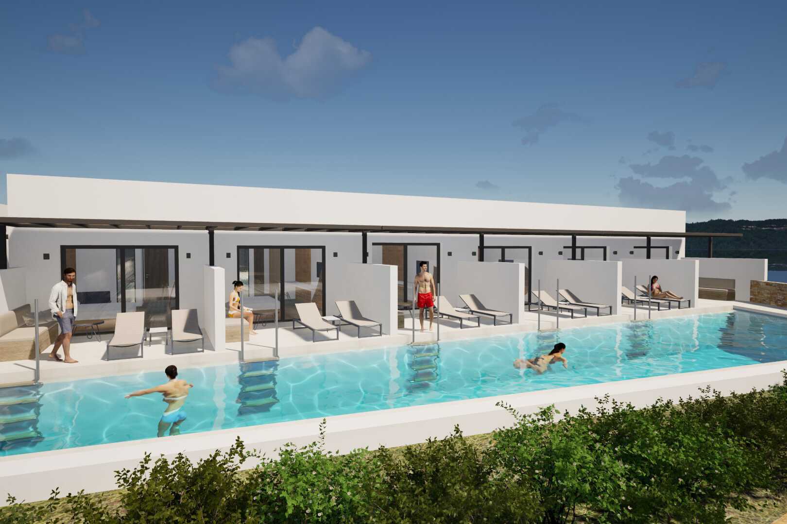 Deluxerum med utgång till delad pool från markterrassen. En dubbelsäng. Wifi, luftkonditionering och deponering ingår. Minibar. Vattenkokare. Tv med internationella kanaler. Tofflor. Hårtork. Badrum med dusch och wc. Städning 7 ggr/vecka.