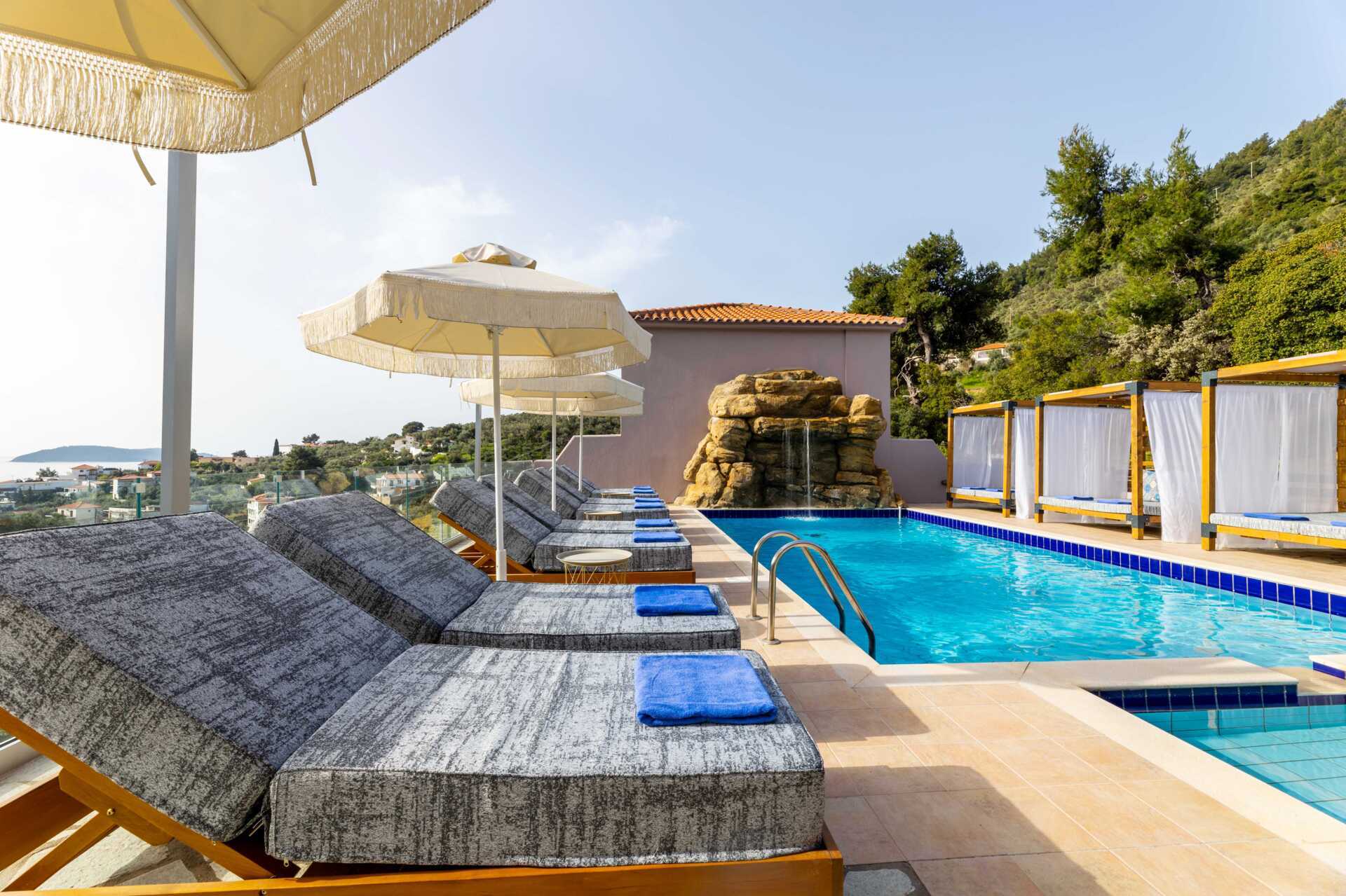 Hotell Avaton Suites & Villas har ett poolområde med en pool, solstolar med extra sköna madrasser och parasoller samt pool- och strandhanddukar. Pool- och snackbar för enklare måltider och svala drycker.