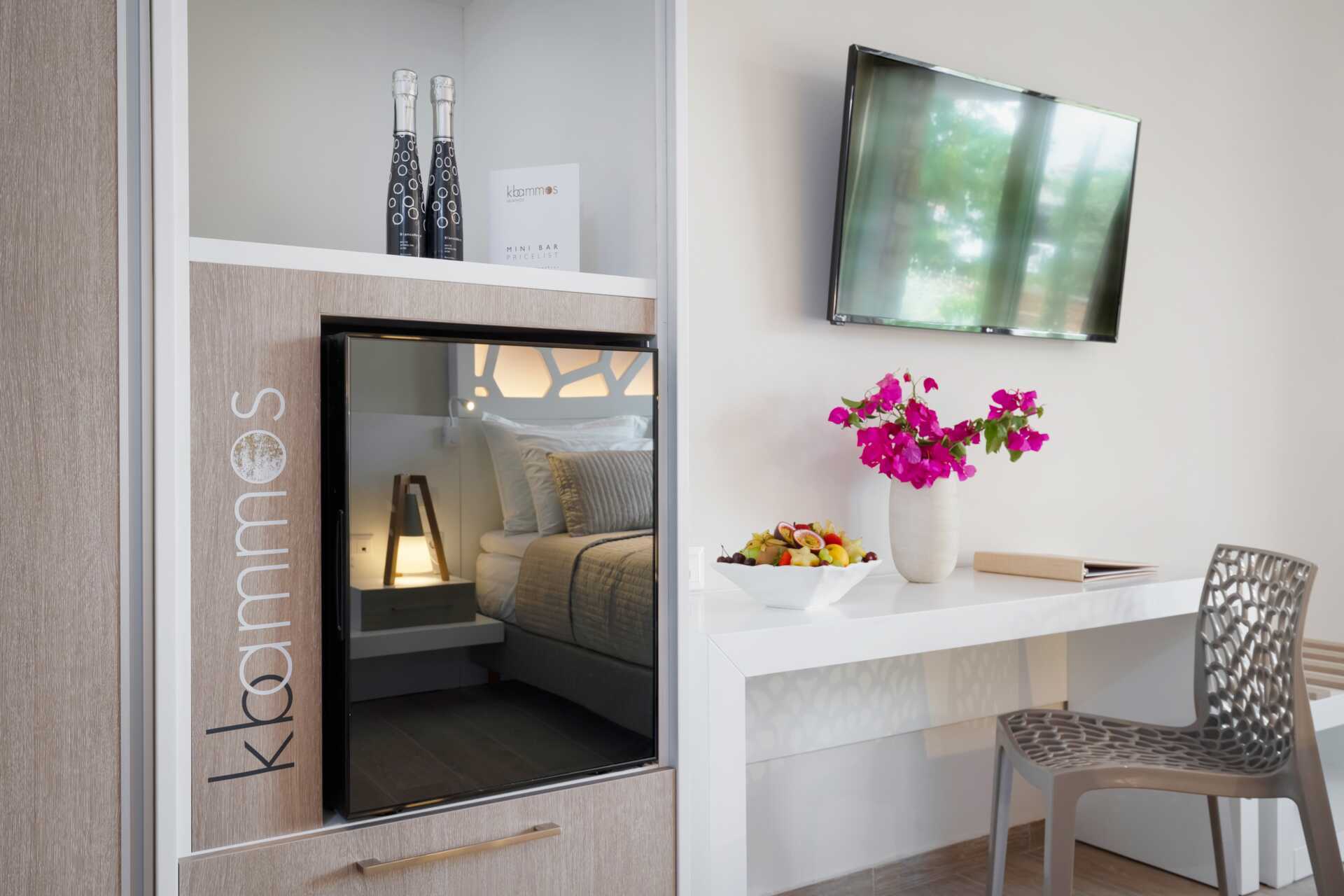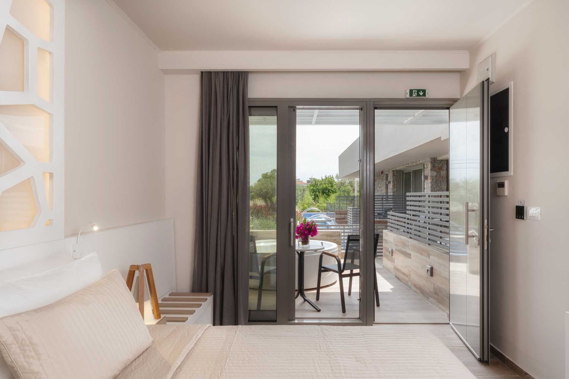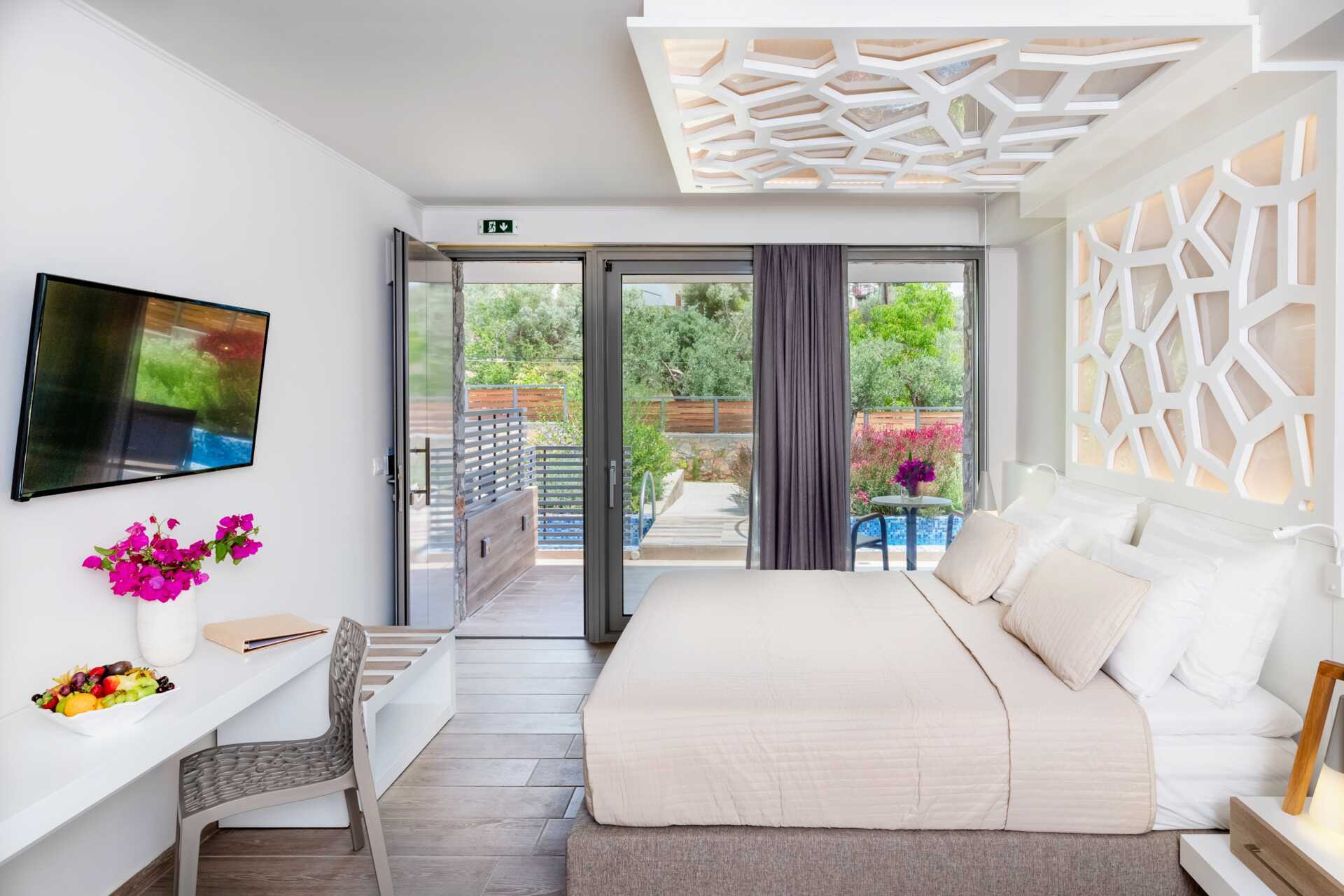 Dubbelrum med markterrass och en liten grund plunge pool - ej uppvärmd. En dubbelsäng. Wifi, luftkonditionering och deponering ingår. Minibar. Tv med internationella kanaler. Hårtork. Badrockar och tofflor. Badrum med dusch och wc. Städning 7 ggr/vecka. Uteplatsen inte är helt privat, utan det finns viss insyn från grannarna.