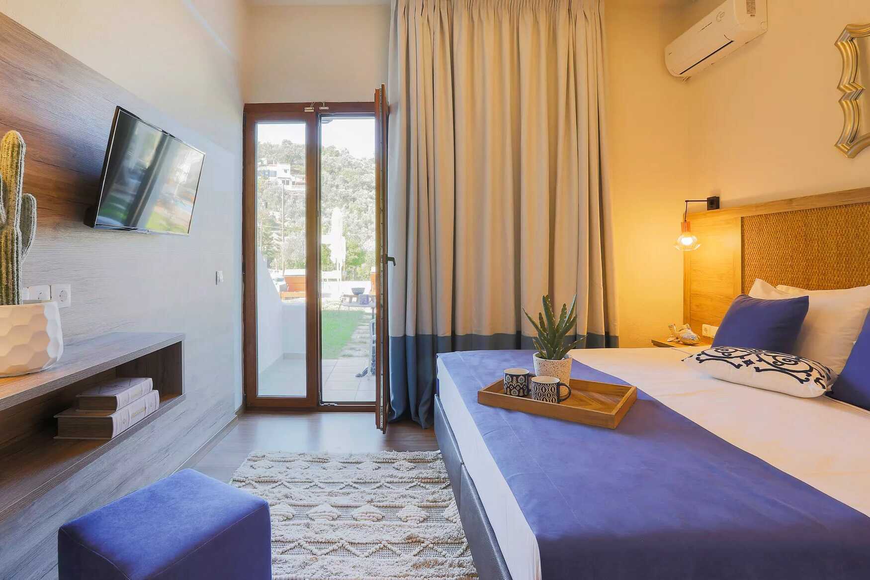 Deluxerum med balkong eller terrass och med poolutsikt. En dubbelsäng eller två enkelsängar. Wifi, luftkonditionering och deponering ingår. Kylskåp. Tv med internationella kanaler. Hårtork. Badrum med dusch och wc. Städning 7 ggr/vecka. Barn under två år räknas in i max antal personer i rummet.