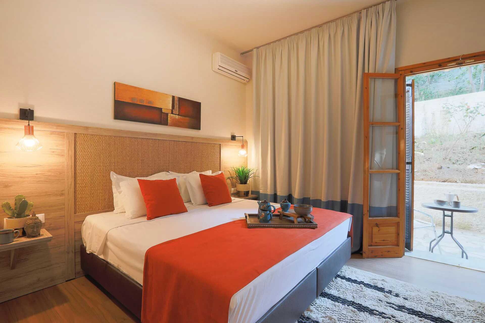 Dubbelrum med balkong eller terrass. En dubbelsäng eller två enkelsängar. Wifi, luftkonditionering och deponering ingår. Kylskåp. Tv med internationella kanaler. Hårtork. Badrum med dusch och wc. Städning 7 ggr/vecka. Barn under två år räknas in i max antal personer i rummet.