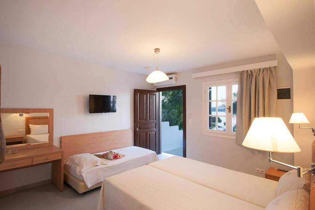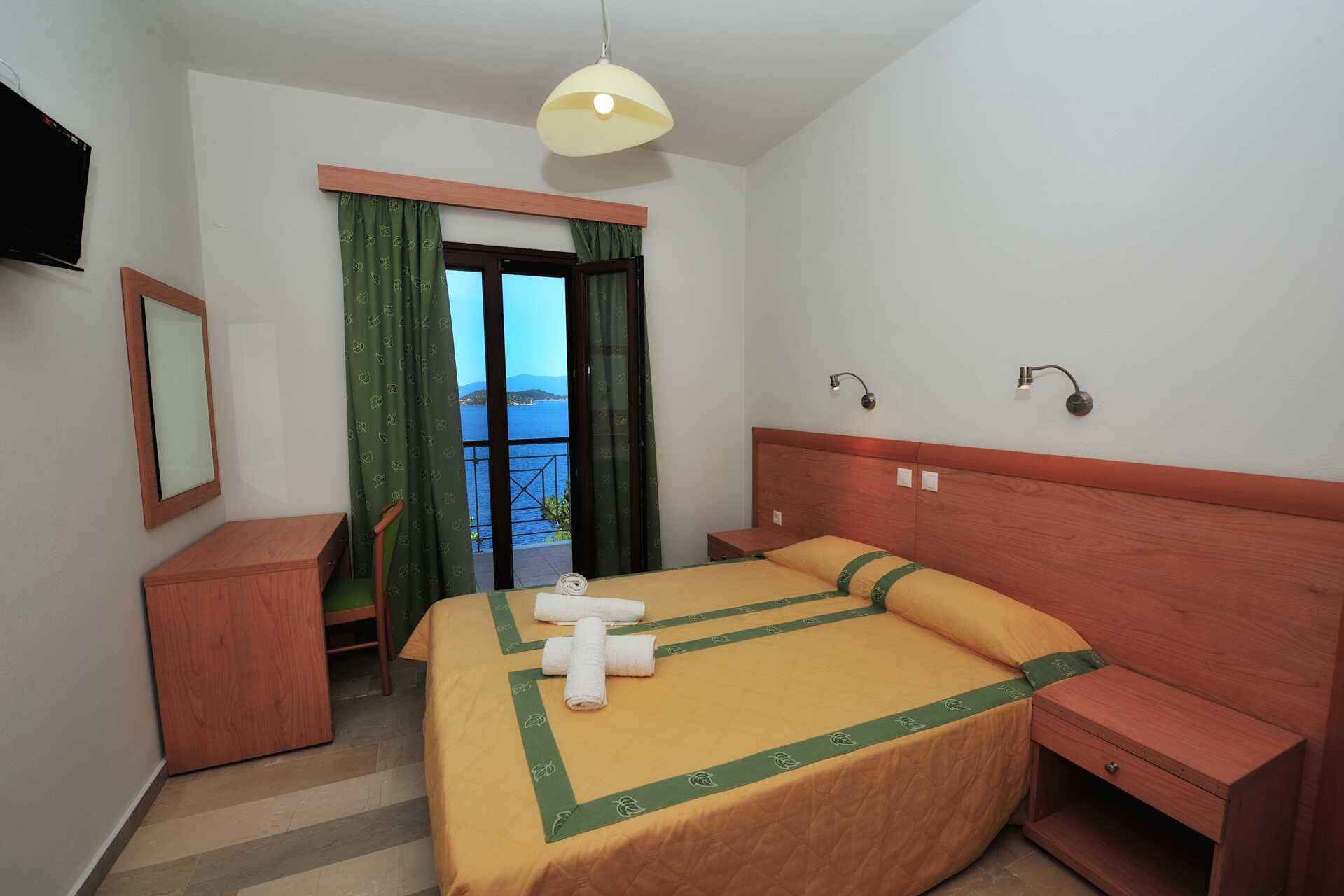 Tvårumslägenhet med balkong eller terrass och havsutsikt. Ett sovrum med dubbelsäng eller två enkelsängar och ett kombinerat vardagsrum/minikök. Möjlighet till extrabäddar i enkelsängar. Minikök med kylskåp, kokplattor, vattenkokare och enkel köksutrustning. Tv med lokala kanaler. Hårtork. Badrum med dusch och wc. Städning 6 ggr/vecka.