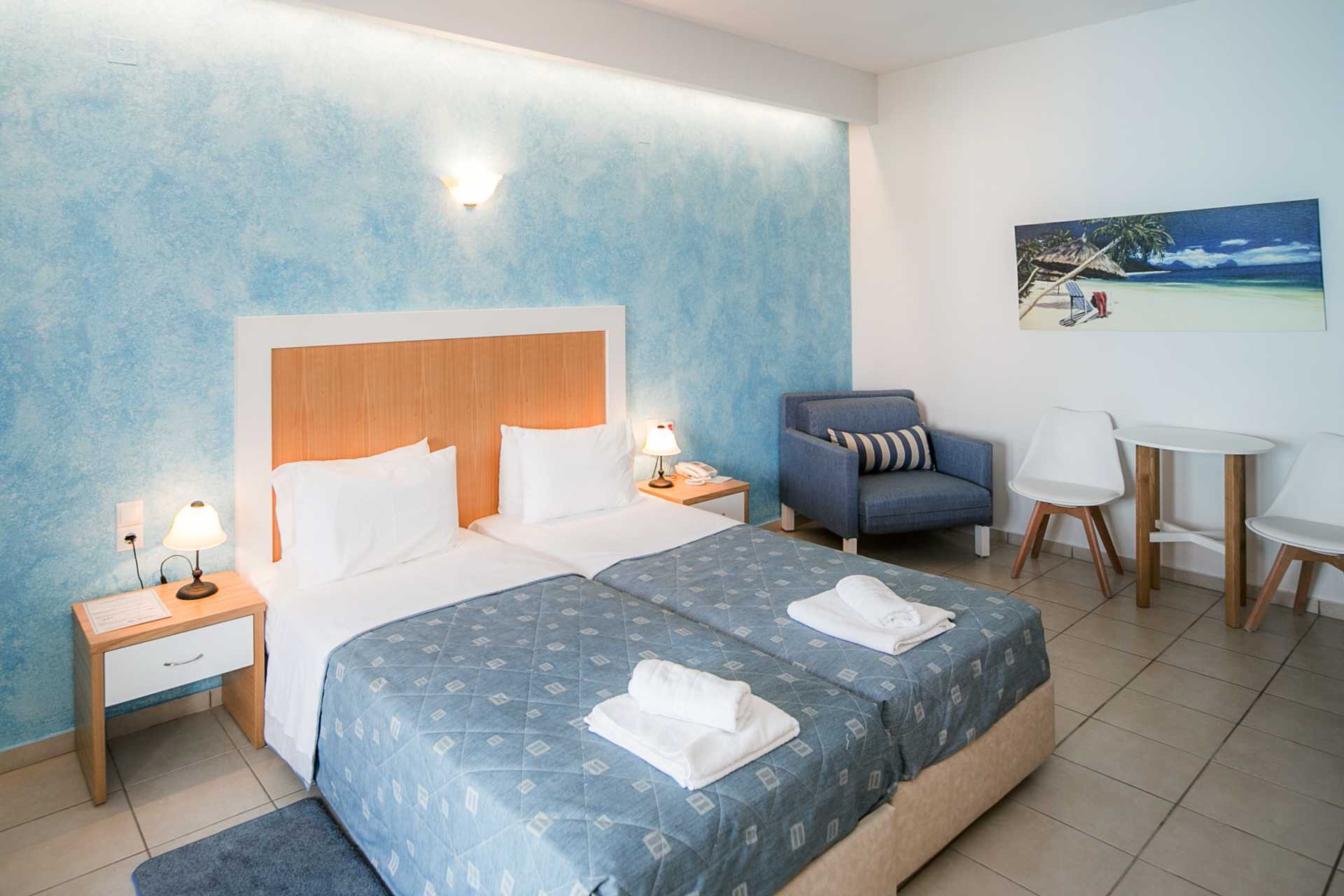 Avståndet till stranden (100 m) avser klapperstensstranden vid hamnen i Skopelos stad. Stranden är en offentligt strand och i början och slutet av säsongen finns det inga solstolar eller parasoll där. Under högsäsong finns det vissa tavernor som tar fram solstolar och parasoll för sina besökare. Runt ön finns fler fantastiska stränder. Till många av dem kan man åka buss, eller ännu smidigare är att hyra bil. Det är ca 4 kilometer till sand- och klapperstensstranden Stafilos beach.