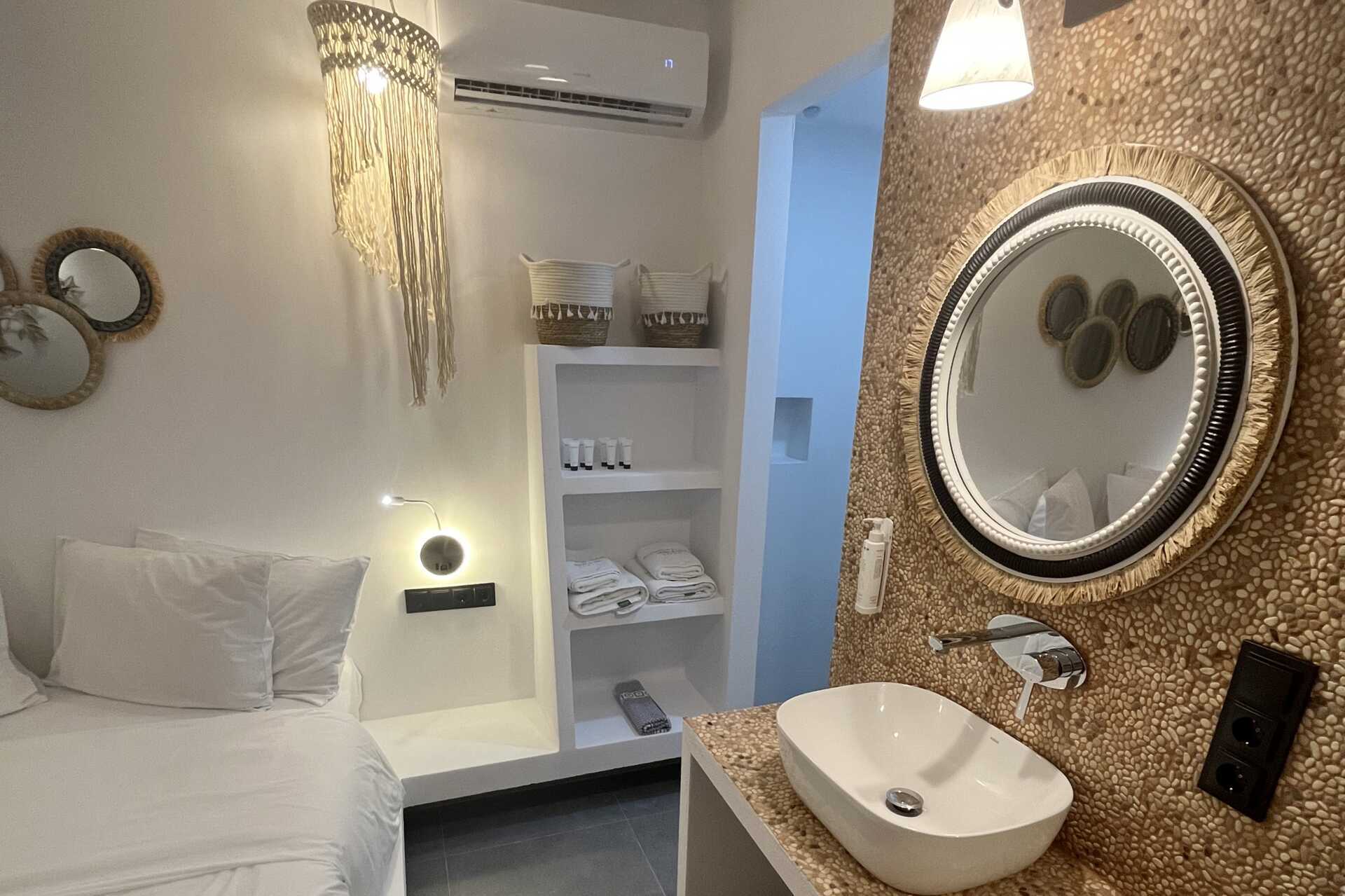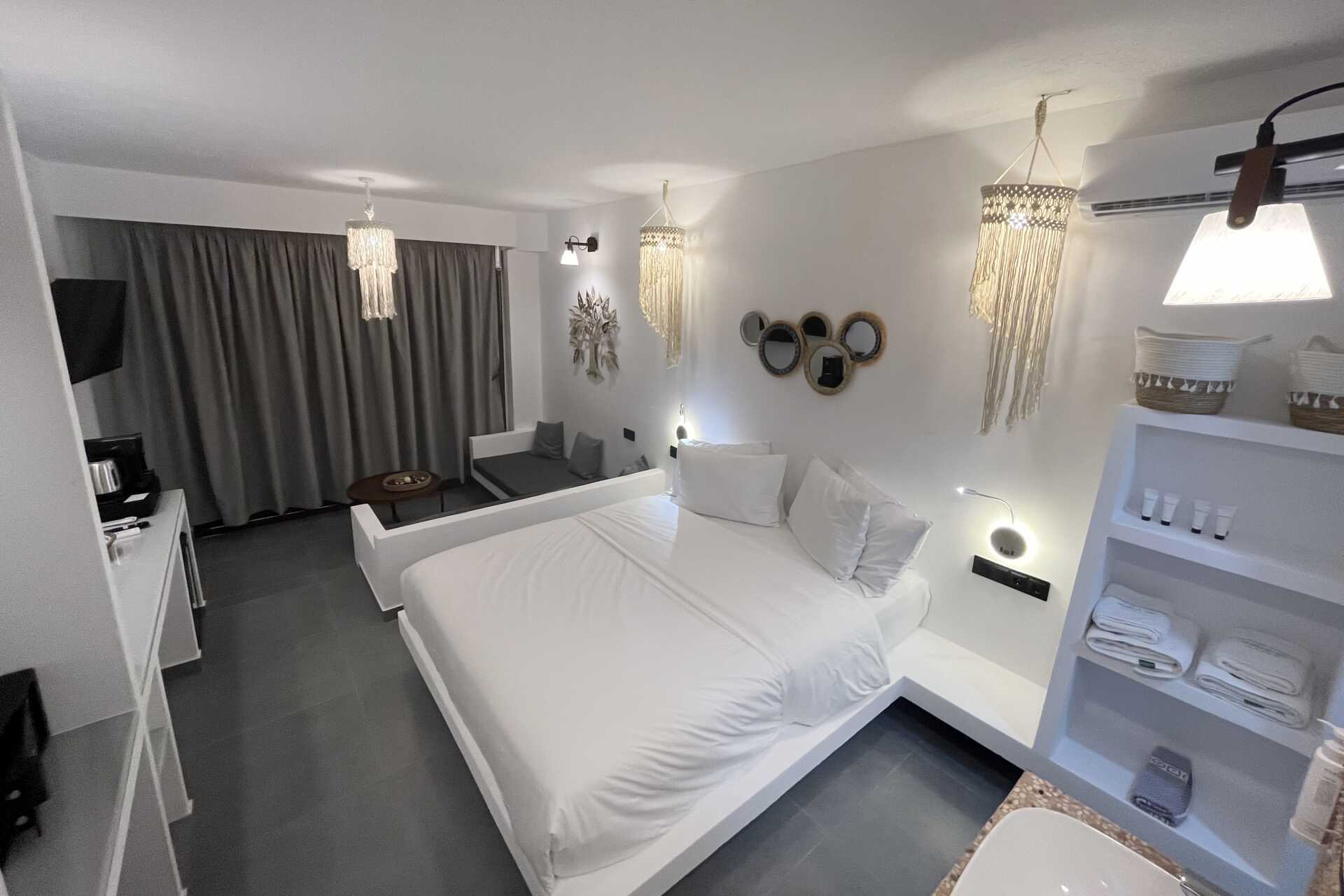 Superiorrum med balkong. Wifi, luftkonditionering och deponering ingår. Kylskåp och en sspressomaskin. Tv med lokala kanaler, högtalare. Hårtork. Badrum med dusch och wc. Städning 7 ggr/vecka.