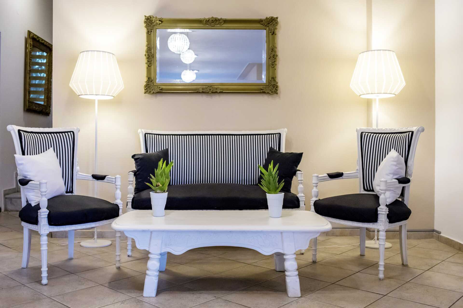 Juniorsvit med balkong eller terrass. Juniorsviten består av två rum. Ett sovrum med en dubbelsäng och ett vardagsrum med bäddsoffor eller två enkelsängar. Wifi, luftkonditionering och deponering ingår. Kylskåp. En tv med lokala kanaler i varje rum. Hårtork. Badrum med badkar och wc. Städning 7 ggr/vecka.