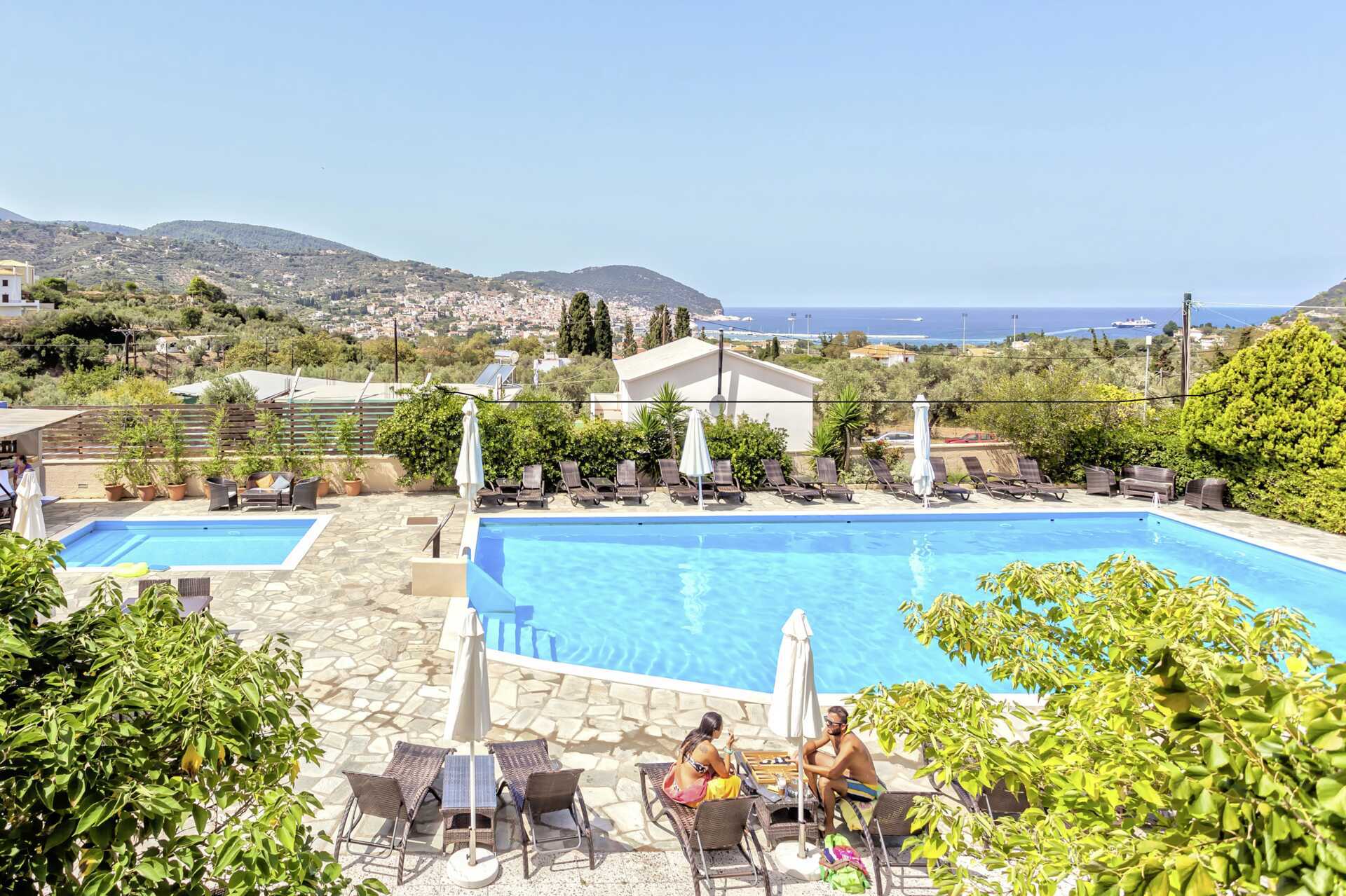 Juniorsvit Premium med balkong eller terrass och poolutsikt. Juniorsviten består av två rum. Ett sovrum med en dubbelsäng och ett vardagsrum med bäddsoffor eller två enkelsängar. Wifi, luftkonditionering och deponering ingår. Kylskåp. En tv med lokala kanaler i varje rum. Hårtork. Badrum med badkar och wc. Städning 7 ggr/vecka.