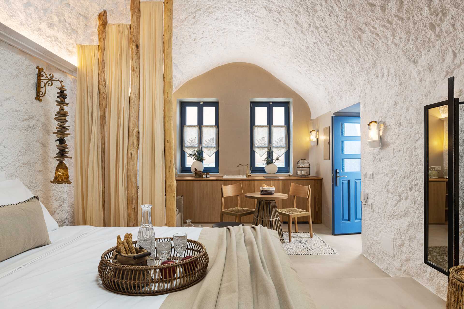 Tvårumslägenhet med markterrass. Sovrum och ett kombinerat vardagsrum med minikök. En dubbelsäng. Möjlighet till extrabäddar i två bäddsoffor. Några lägenheter är i etage, på entréplan finns ett kombinerat vardagsrum och minikök, badrum samt ett sovrum med en dubbelsäng och en trappa upp finns ett sovloft med en dubbelsäng. Minikök med kokplattor, kylskåp, vattenkokare, brödrost och enkel köksutrustning. Wifi, luftkonditionering och deponering ingår. Tv med internationella kanaler. Badrockar och tofflor. Hårtork. Badrum med två handfat, dusch och wc. Städning 6 ggr/vecka.